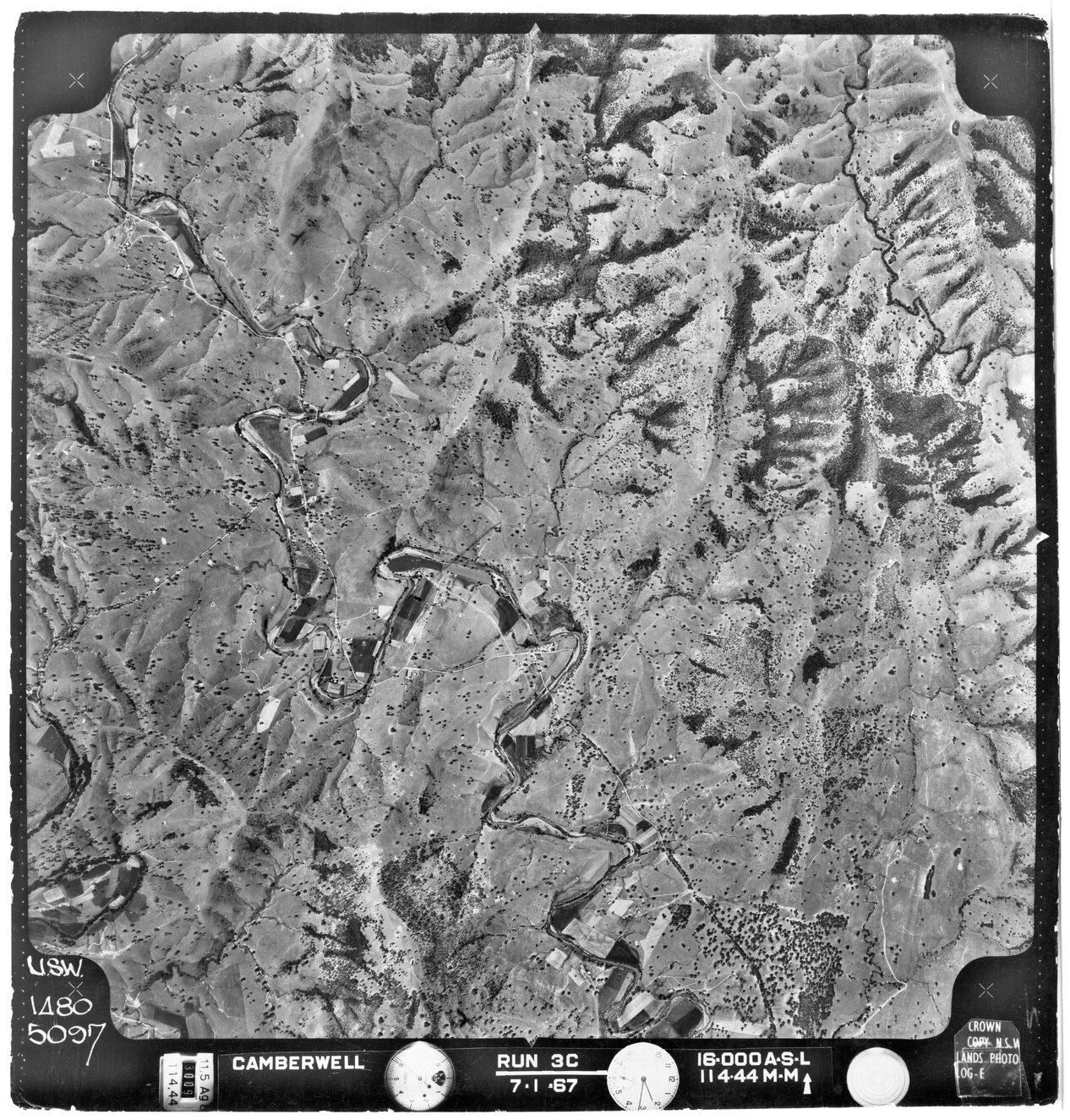 New South Wales. Department of Lands, Camberwell, NSW - Aerial photograph, January 1967 (5097) (7th January 1967), [CAMBERWELL-01-1967-R003C-1480-5097]. Living Histories, accessed 13/03/2026, https://livinghistories.newcastle.edu.au/nodes/view/80478