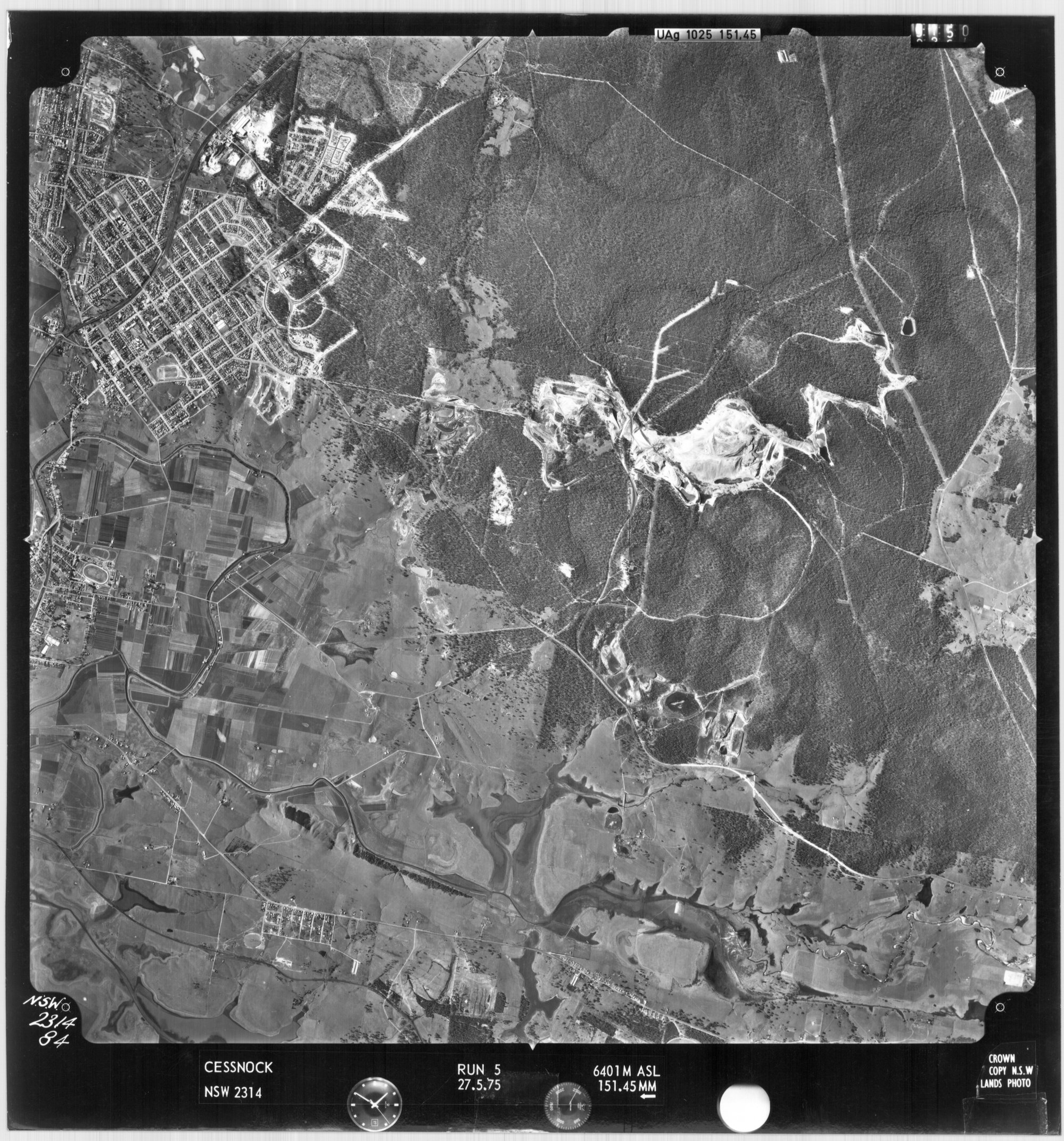 New South Wales. Department of Lands, Cessnock, NSW - Aerial photograph, May 1975 (84) (27th May 1975), [CESSNOCK-05-1975-R005-2314-84]. Living Histories, accessed 16/02/2026, https://livinghistories.newcastle.edu.au/nodes/view/80583