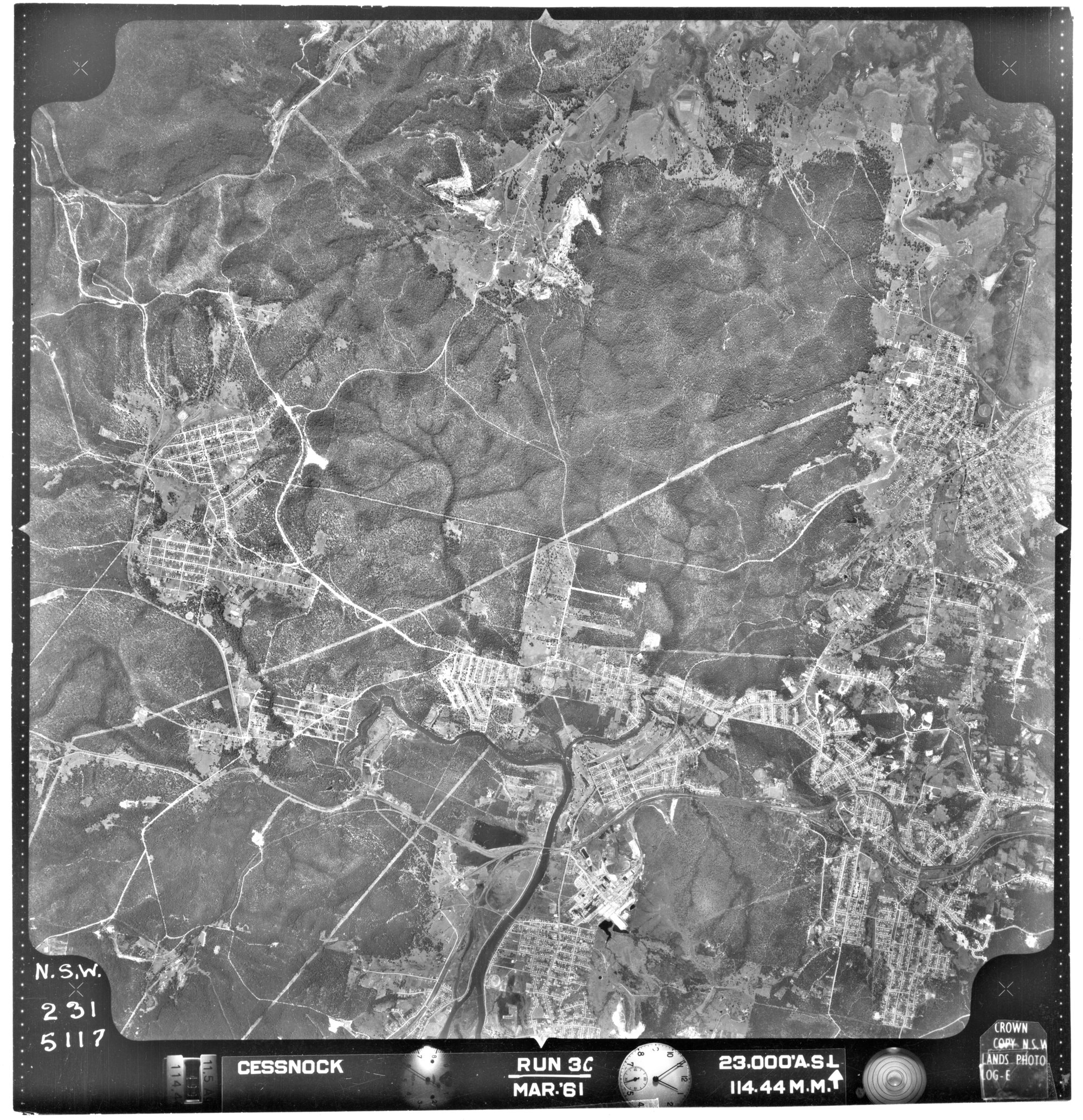 New South Wales. Department of Lands, Cessnock, NSW - Aerial photograph, March 1961 (5117) (1961-03), [CESSNOCK-03-1961-R003C-231-5117]. Living Histories, accessed 07/03/2026, https://livinghistories.newcastle.edu.au/nodes/view/80714