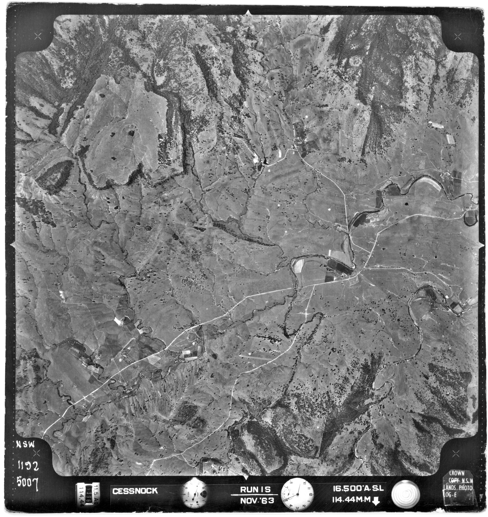 New South Wales. Department of Lands, Cessnock, NSW - Aerial photograph, November 1963 (5007) (1963-11), [CESSNOCK-11-1963-R001S-1192-5007]. Living Histories, accessed 19/03/2026, https://livinghistories.newcastle.edu.au/nodes/view/80740