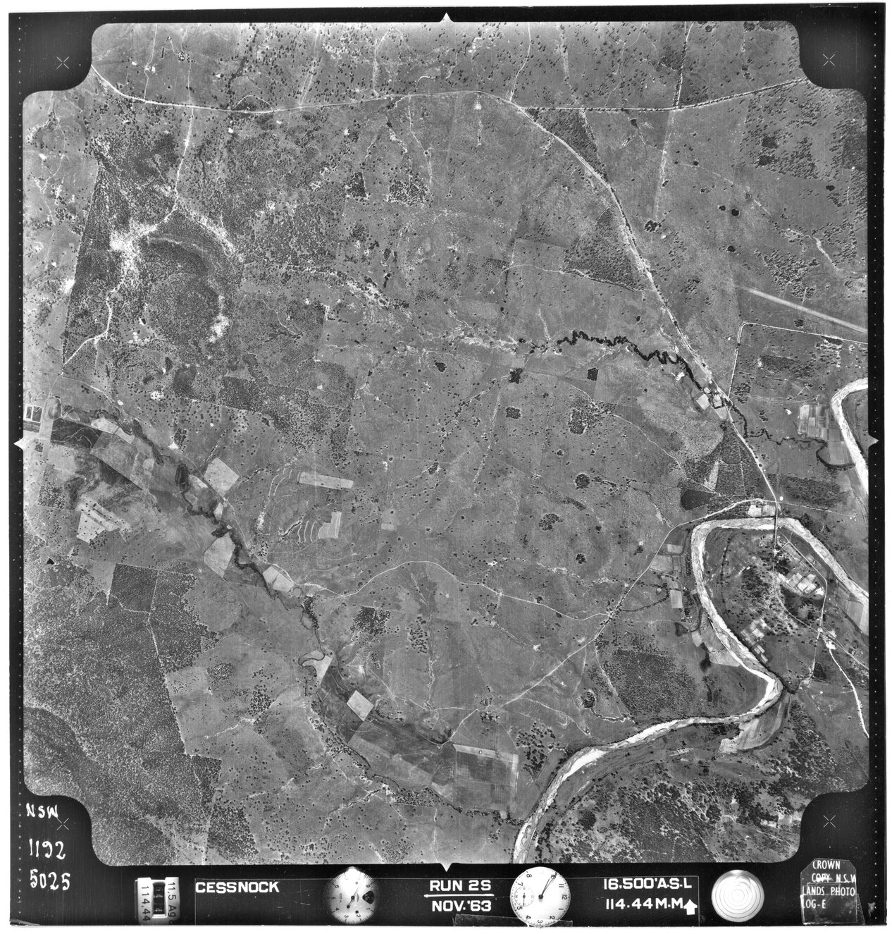 New South Wales. Department of Lands, Cessnock, NSW - Aerial photograph, November 1963 (5025) (1963-11), [CESSNOCK-11-1963-R002S-1192-5025]. Living Histories, accessed 25/01/2026, https://livinghistories.newcastle.edu.au/nodes/view/80758
