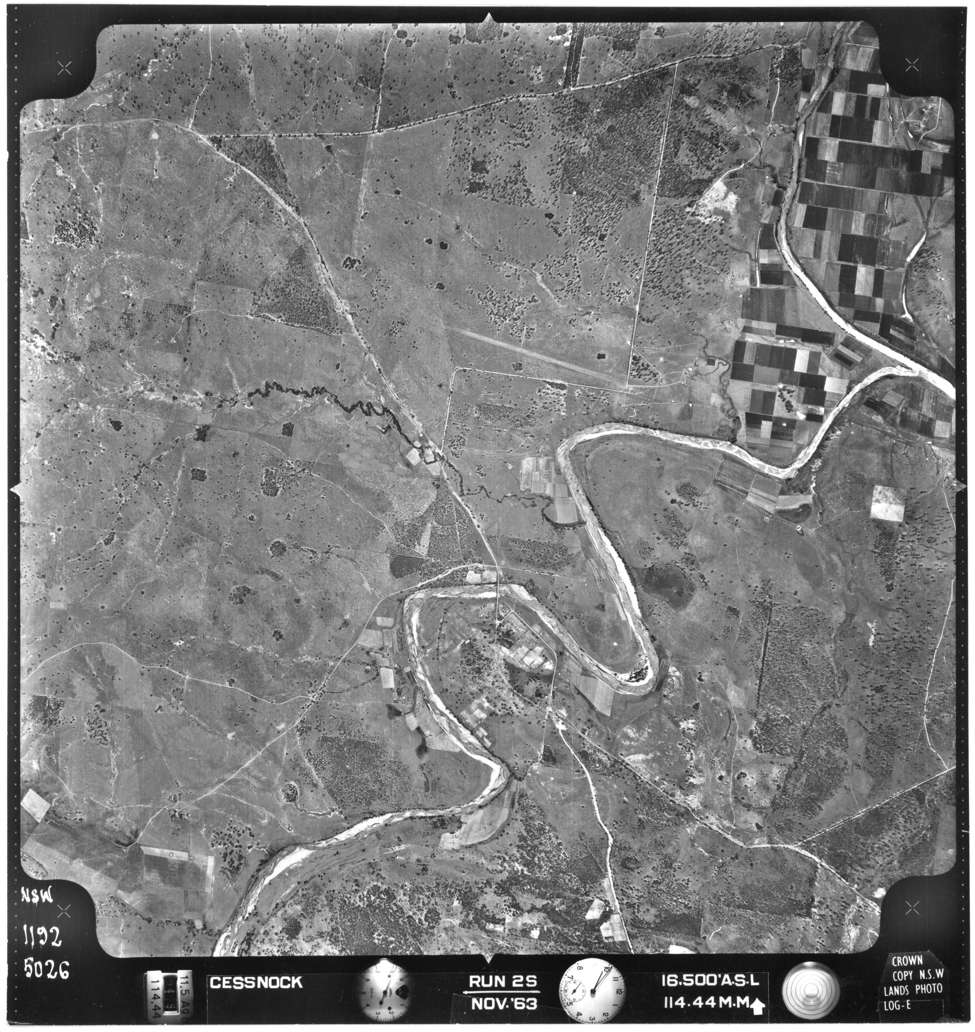 New South Wales. Department of Lands, Cessnock, NSW - Aerial photograph, November 1963 (5026) (1963-11), [CESSNOCK-11-1963-R002S-1192-5026]. Living Histories, accessed 12/02/2026, https://livinghistories.newcastle.edu.au/nodes/view/80759