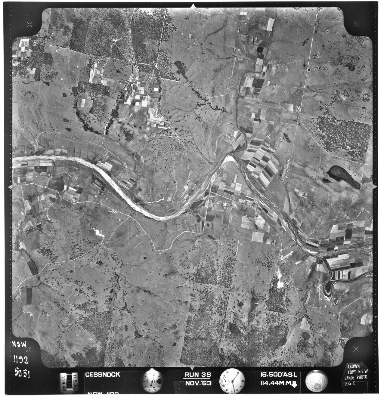 New South Wales. Department of Lands, Cessnock, NSW - Aerial photograph, November 1963 (5051) (1963-11), [CESSNOCK-11-1963-R003S-1192-5051]. Living Histories, accessed 15/04/2026, https://livinghistories.newcastle.edu.au/nodes/view/80784