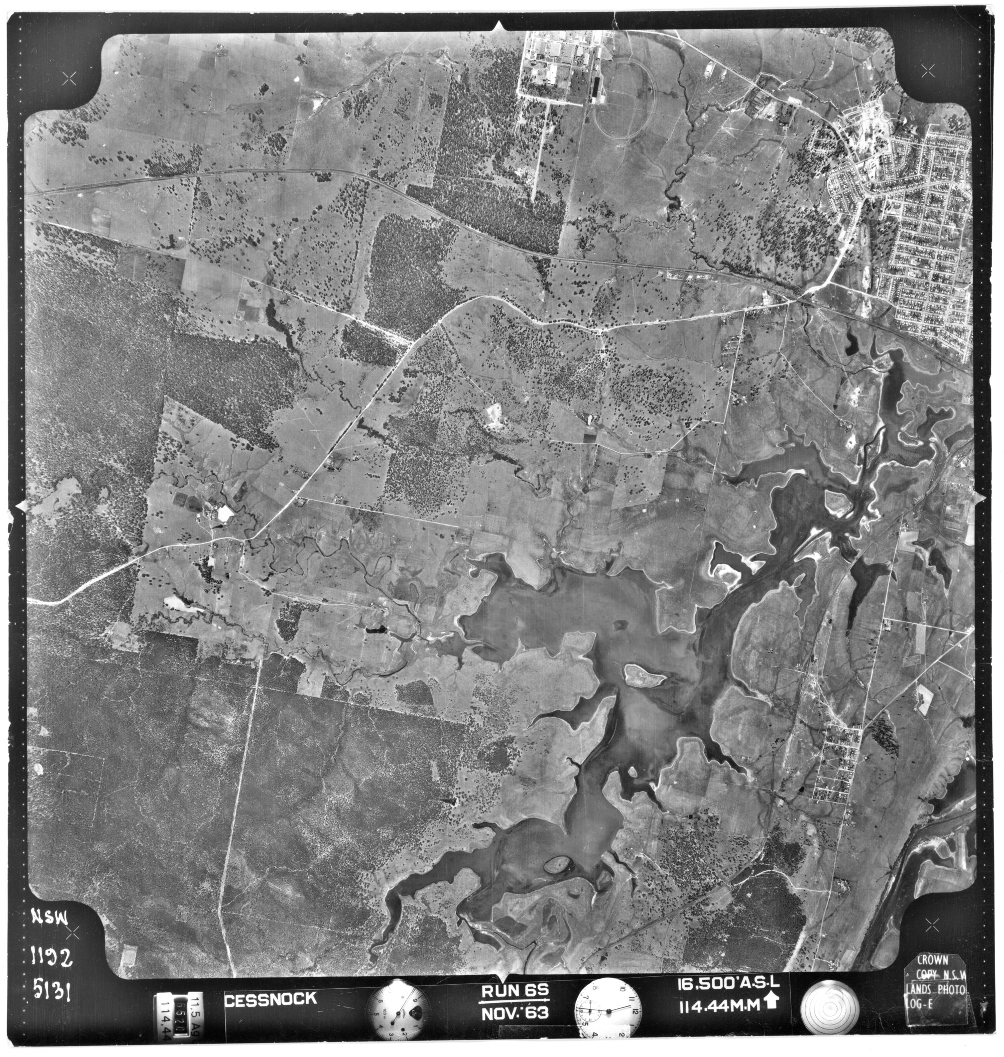 New South Wales. Department of Lands, Cessnock, NSW - Aerial photograph, November 1963 (5131) (1963-11), [CESSNOCK-11-1963-R006S-1192-5131]. Living Histories, accessed 20/03/2026, https://livinghistories.newcastle.edu.au/nodes/view/80851