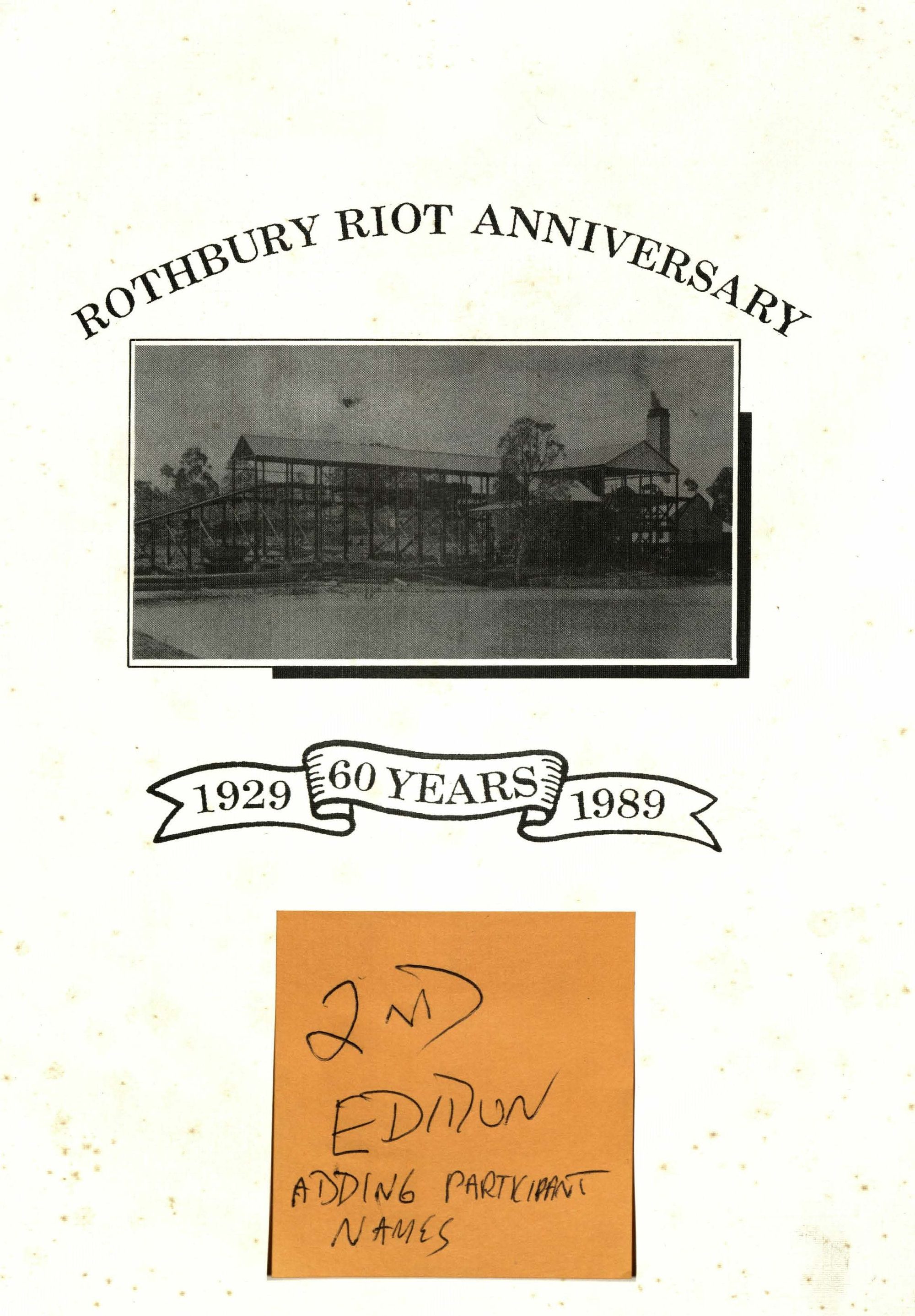 Rothbury riot anniversary : 60 years 1929-1989. (2nd edition)