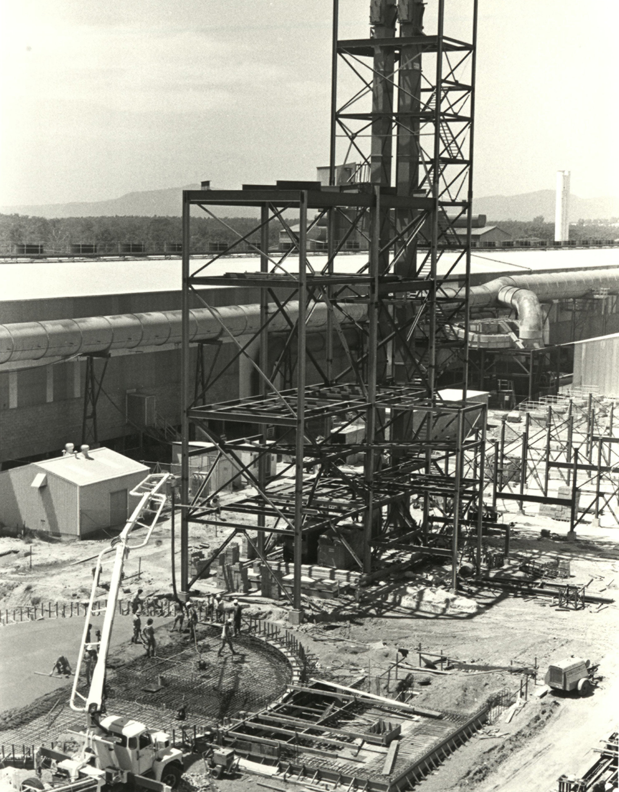 Alumina unloading and handling. Note silo foundation being poured, Alcan (Australia), Kurri Kurri Works, 12 December1978 (12th December 1978), [KII-072]. Living Histories, accessed 08/03/2026, https://livinghistories.newcastle.edu.au/nodes/view/81123
