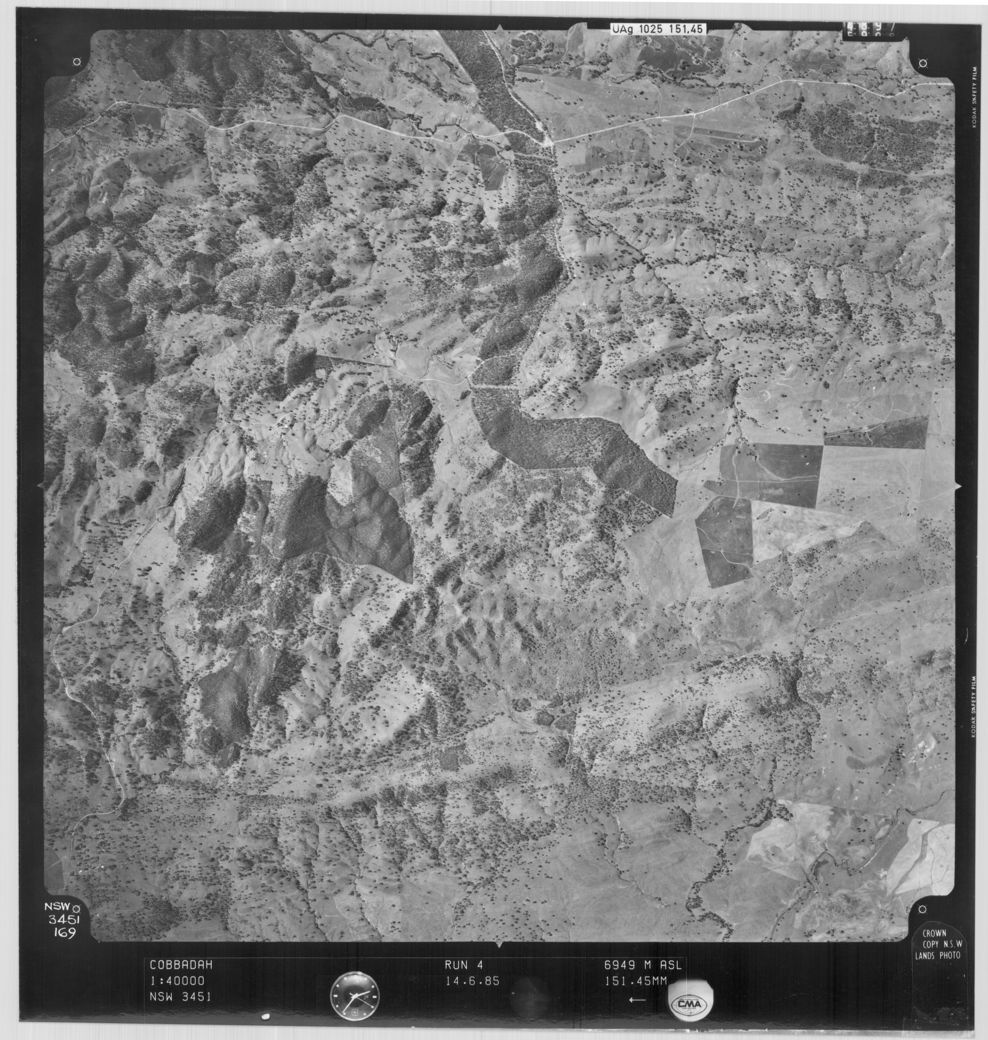 New South Wales. Department of Lands, Cobbadah, NSW - Aerial photograph, June 1985 (169) (14th June 1985), [COBBADAH-06-1985-R004-3451-169]. Living Histories, accessed 17/01/2026, https://livinghistories.newcastle.edu.au/nodes/view/81221