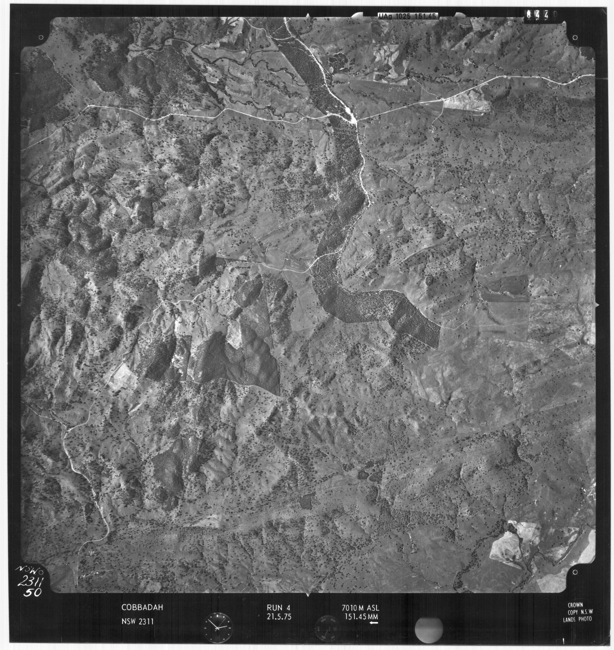 New South Wales. Department of Lands, Cobbadah, NSW - Aerial photograph, May 1975 (50) (14th June 1985), [COBBADAH-05-1975-R004-2311-50]. Living Histories, accessed 15/02/2026, https://livinghistories.newcastle.edu.au/nodes/view/81230