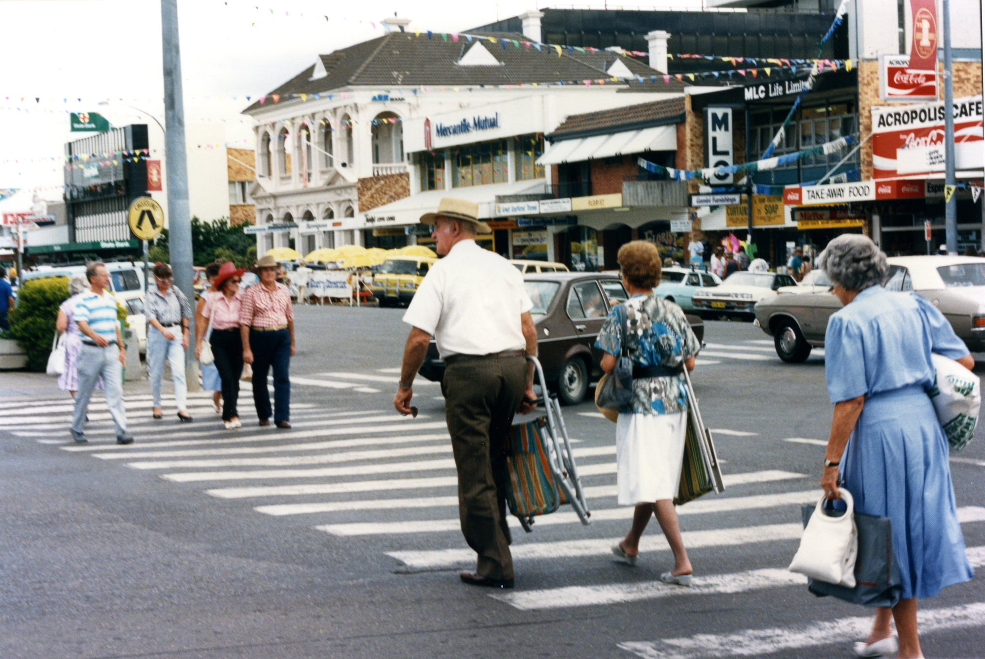 Pedestrian crossing, Tamworth, NSW. Taken during the Tamworth Country Music Festival, January 1989