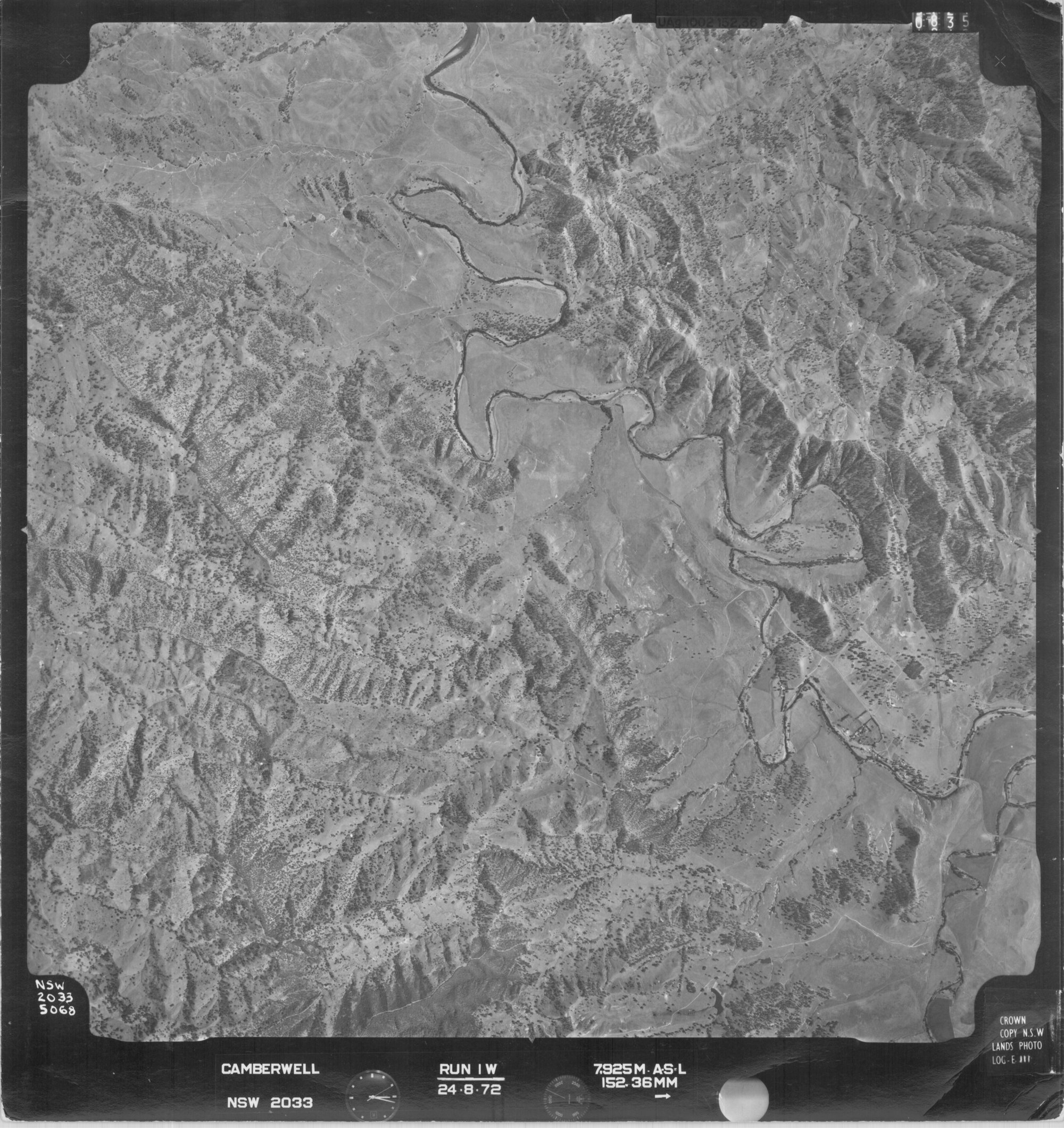 New South Wales. Department of Lands, Camberwell, NSW - Aerial photograph, August 1972 (5068) (24th August 1972), [CAMBERWELL-08-1972-R001W-2033-5068]. Living Histories, accessed 14/02/2026, https://livinghistories.newcastle.edu.au/nodes/view/81384
