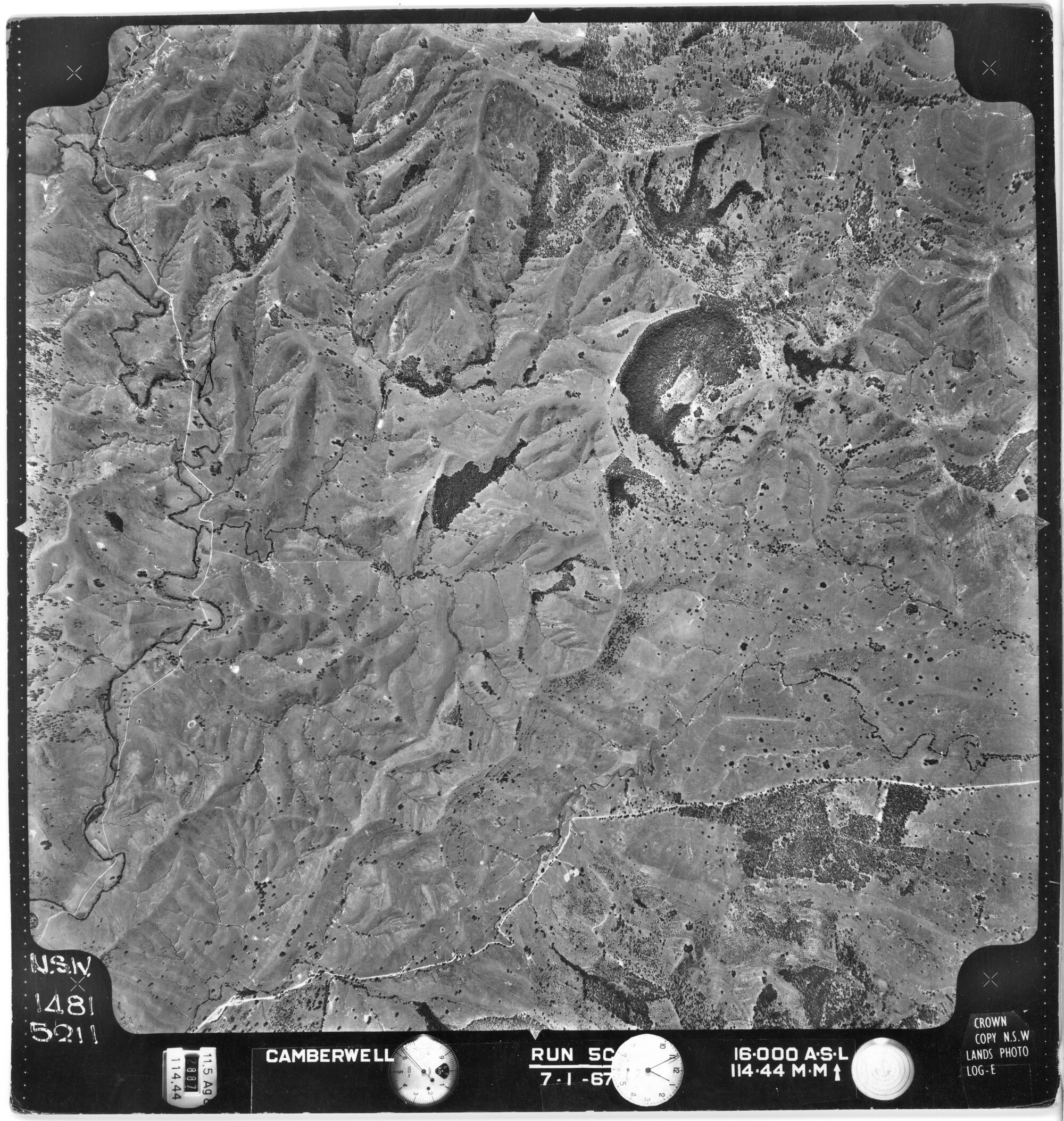 New South Wales. Department of Lands, Camberwell, NSW - Aerial photograph, January 1967 (5211) (7th January 1967), [CAMBERWELL-01-1967-R005C-1481-5211]. Living Histories, accessed 13/01/2026, https://livinghistories.newcastle.edu.au/nodes/view/81416