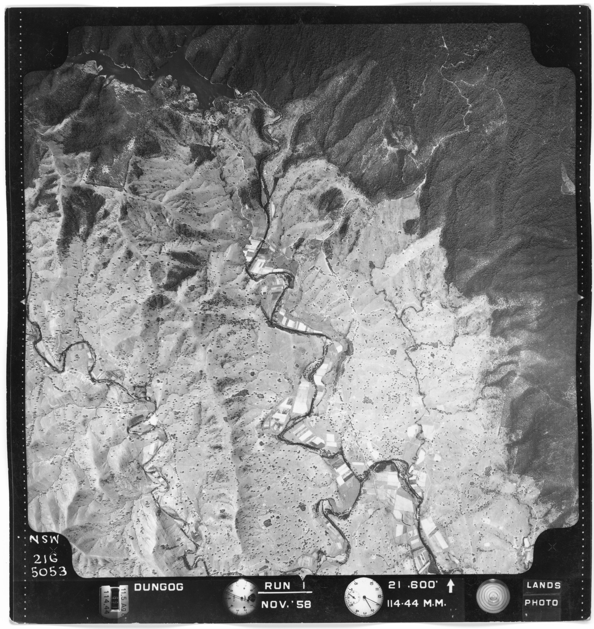 New South Wales. Department of Lands, Dungog, NSW - Aerial photograph, November 1958 (5053) (November, 1958), [DUNGOG-11-1958-R001-216-5053]. Living Histories, accessed 17/04/2026, https://livinghistories.newcastle.edu.au/nodes/view/81836