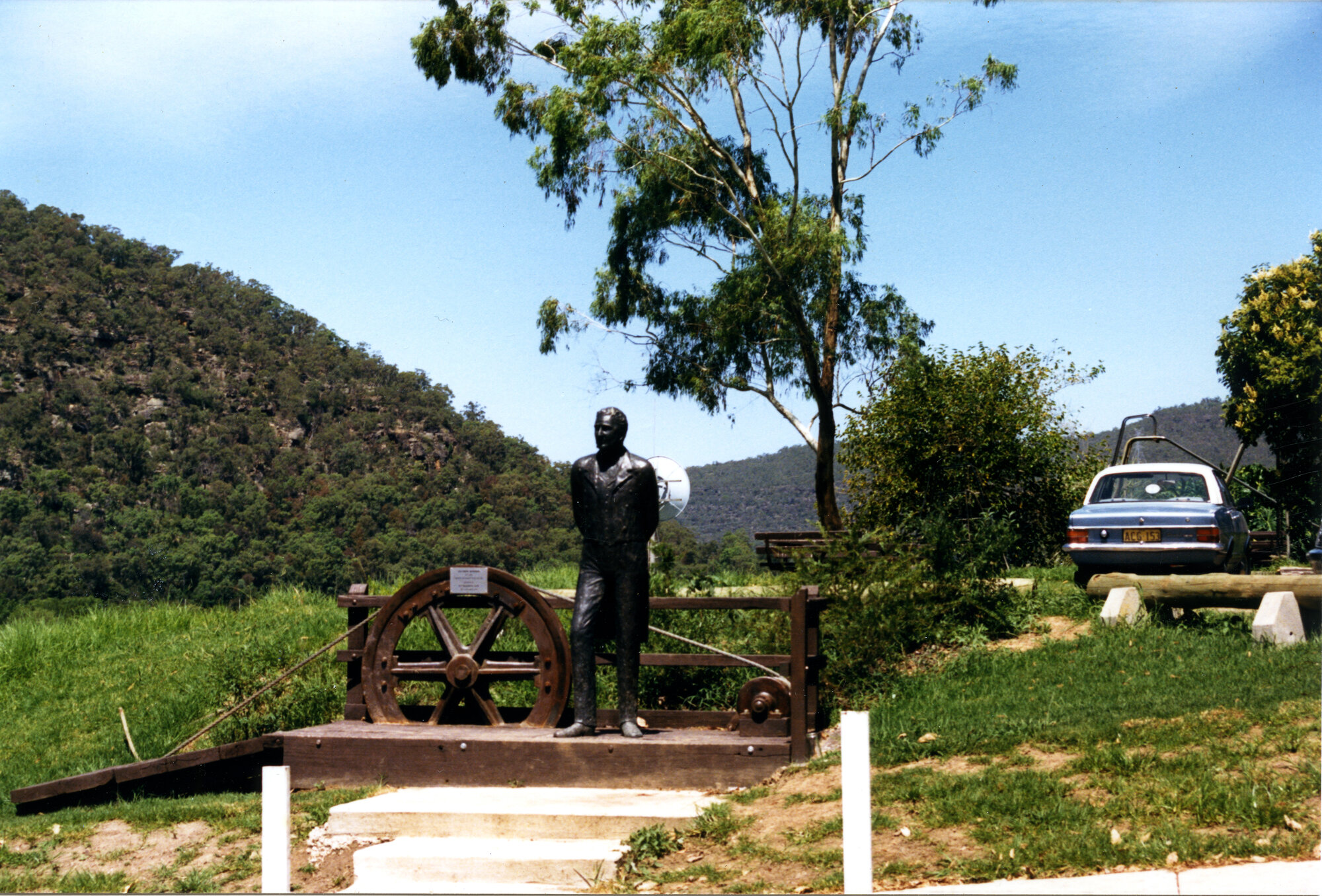 Sternbeck, Percival William, 1921-2004, Statue of Solomon Wiseman (1777-1838) at Wiseman's Ferry, NSW, February 1989 (Between 1st February 1989 and 28th February 1989), [Sternbeck_Bk23_0289_008]. Living Histories, accessed 20/03/2026, https://livinghistories.newcastle.edu.au/nodes/view/81961