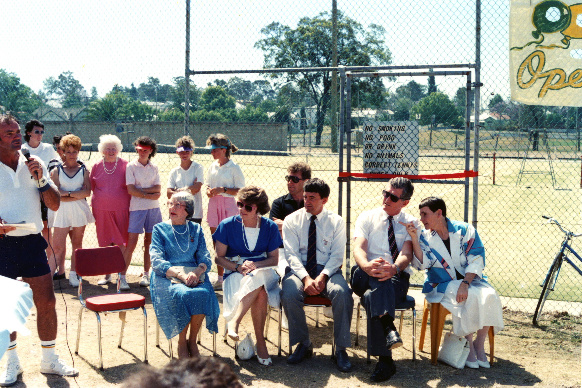Dignitaries at the Opening of the Ken James Memorial Courts, Kurri Kurri Tennis Club, 13 November 1988