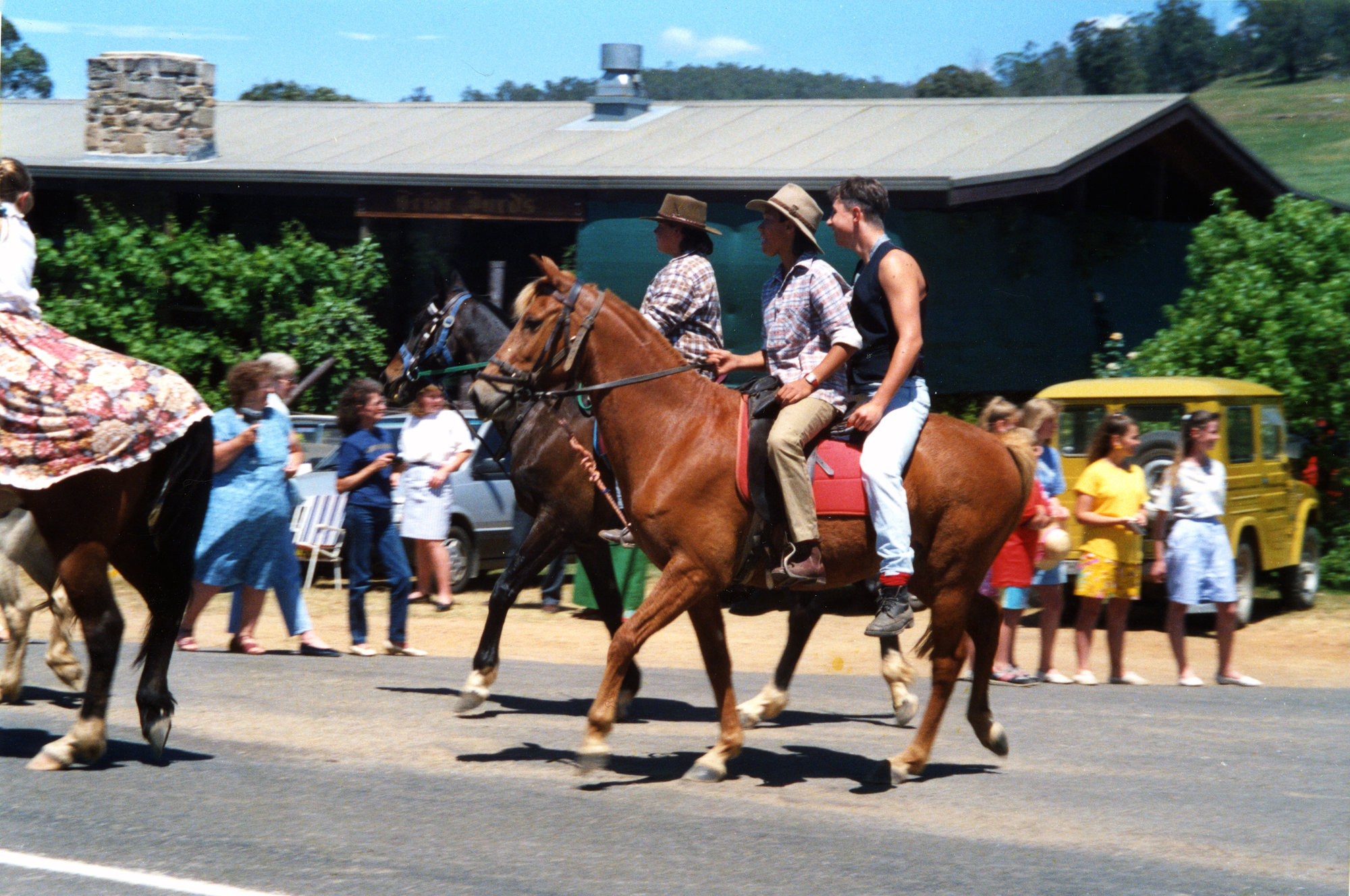 Sternbeck, Percival William, 1921-2004, Horse riders in parade, Back to Wollombi Centennial Celebrations, October 1988 (Between 1st October 1988 and 31st October 1988), [Sternbeck_bk19_Oct_1988_027]. Living Histories, accessed 16/01/2026, https://livinghistories.newcastle.edu.au/nodes/view/82070