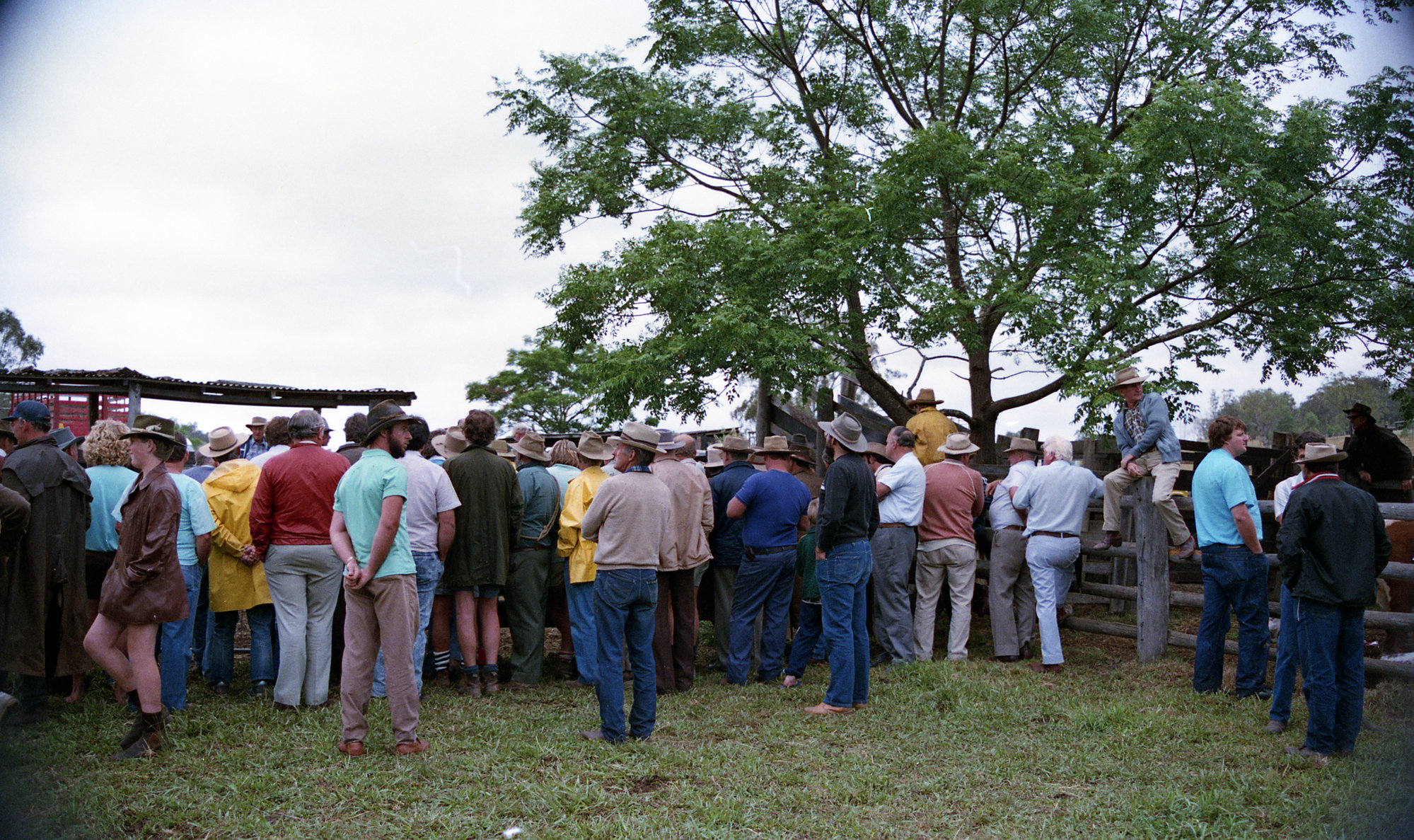 Sternbeck, Percival William, 1921-2004, Crowd at the cattle sales, Wollombi, NSW, November 1988 (Between 1st November 1988 and 30th November 1988), [Sternbeck_bk19_Nov_1988_009]. Living Histories, accessed 17/04/2026, https://livinghistories.newcastle.edu.au/nodes/view/82090