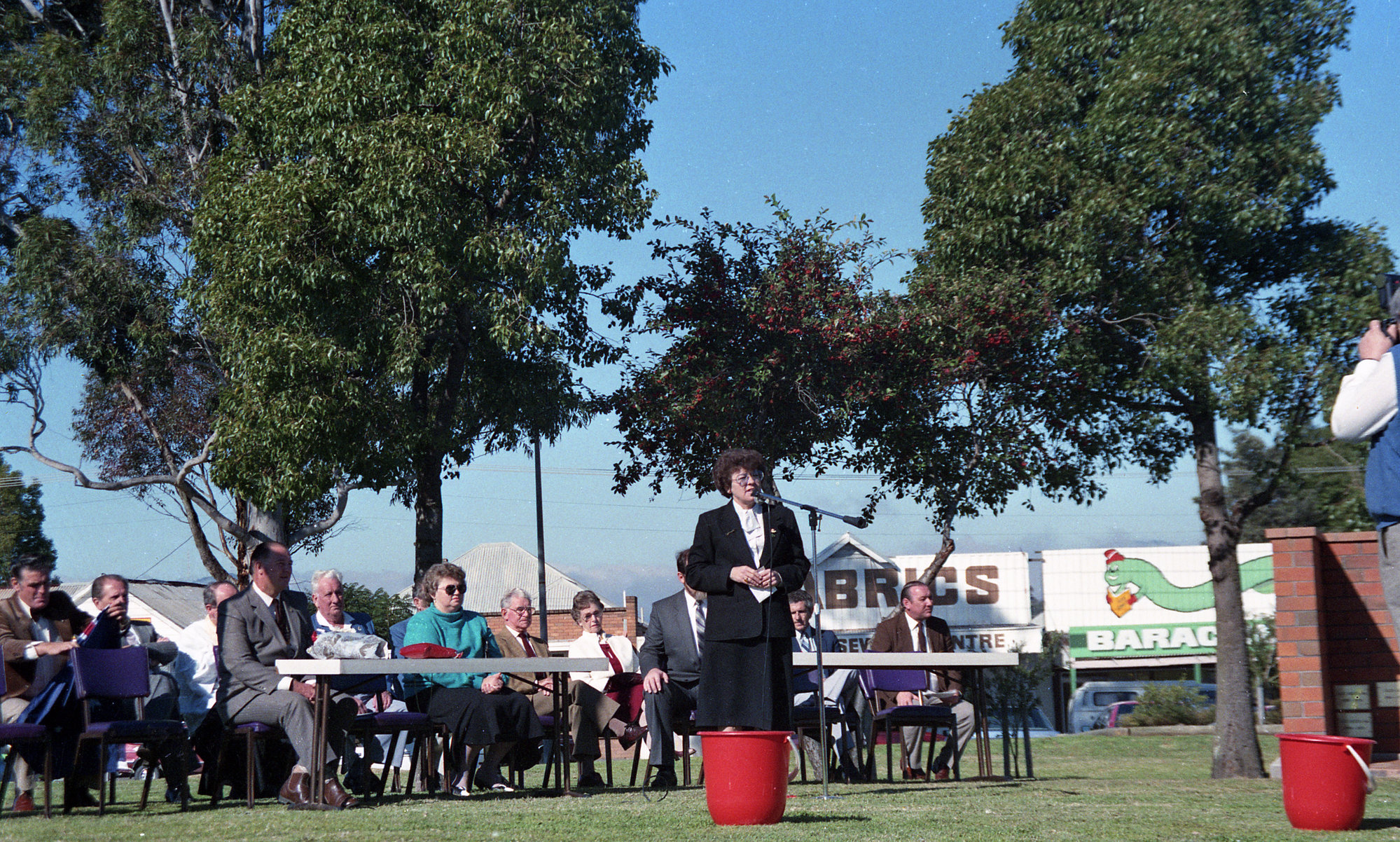 Sternbeck, Percival William, 1921-2004, Mayor of Cessnock, Maree Callaghan speaking at the opening of the Coal Mines Memorial, Rotary Park, Kurri Kurri, NSW, June 1988 (June 1988), [Sternbeck_Bk18_Jun_88a_009]. Living Histories, accessed 07/02/2026, https://livinghistories.newcastle.edu.au/nodes/view/82192