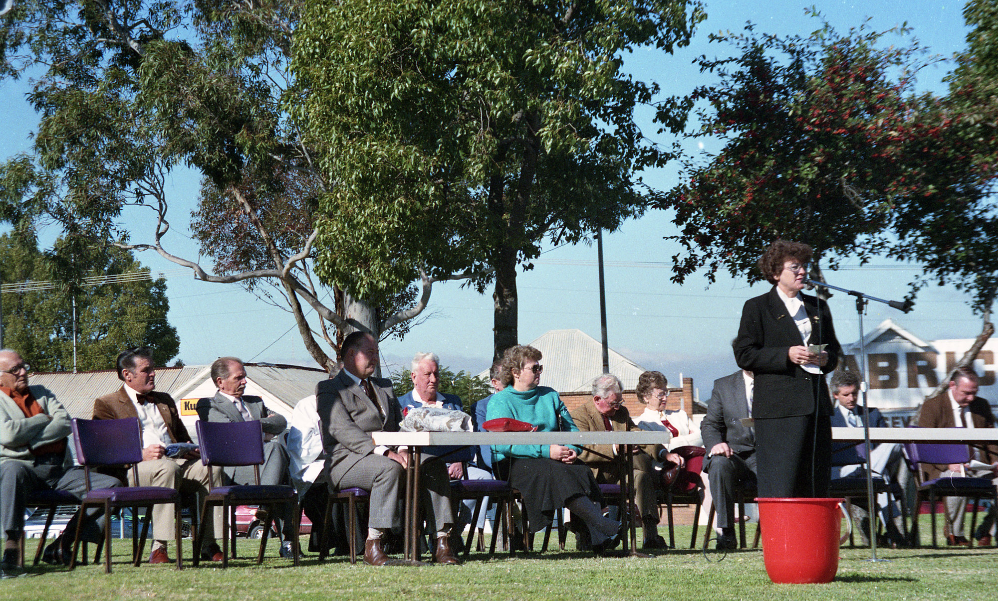 Dignitaries - Opening of the Coal Mines Memorial, Rotary Park, Kurri Kurri, NSW, June 1988