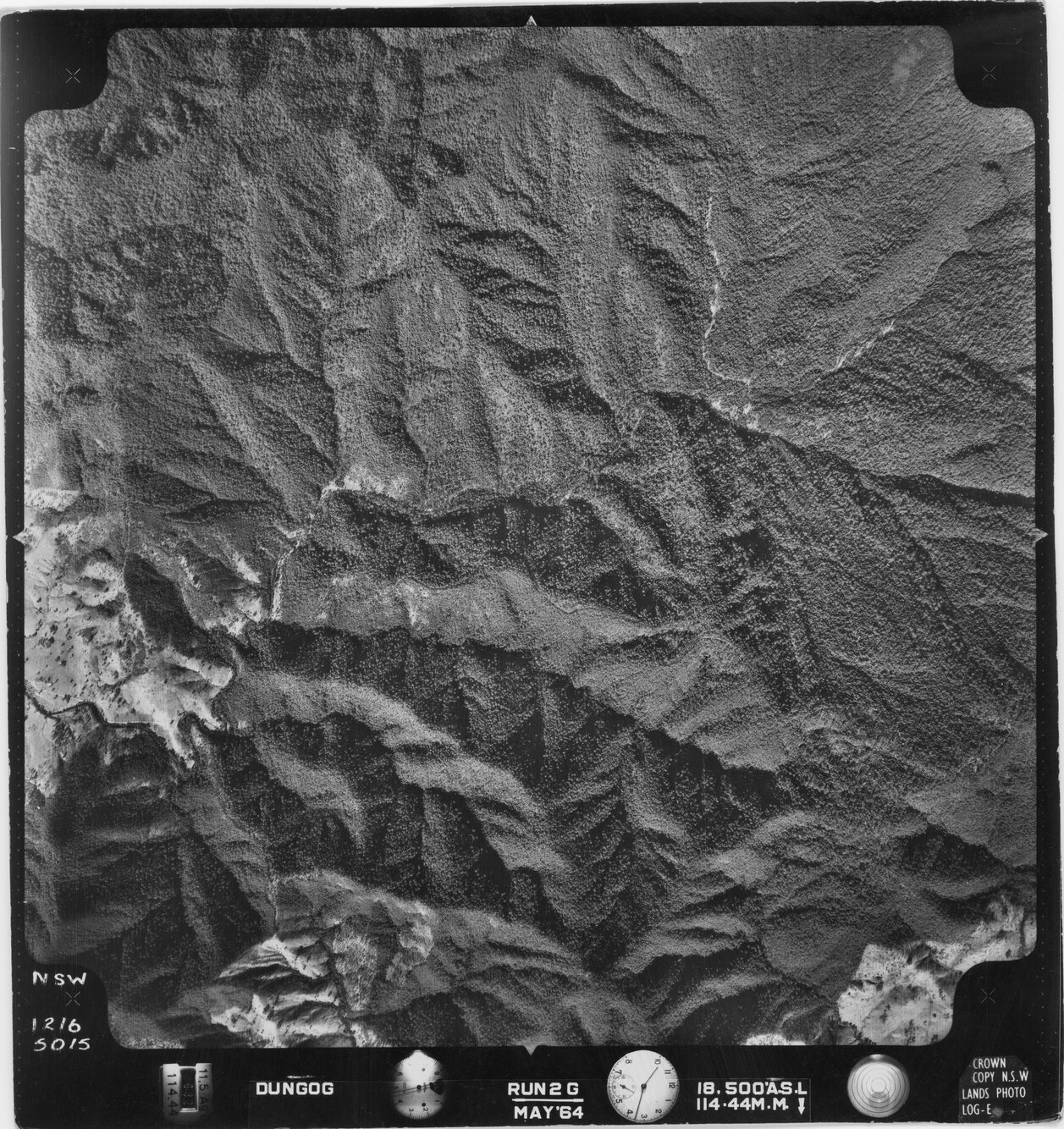 New South Wales. Department of Lands, Dungog, NSW - Aerial photograph, May 1964 (5015) (May, 1964), [DUNGOG-05-1964-R002G-1216-5015]. Living Histories, accessed 25/01/2026, https://livinghistories.newcastle.edu.au/nodes/view/82281