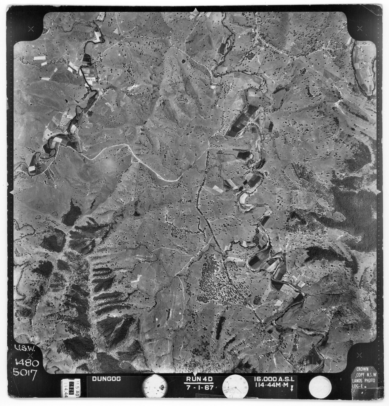 New South Wales. Department of Lands, Dungog, NSW - Aerial photograph, January 1967 (5005) (January, 1967), [DUNGOG-01-1967-R004D-1480-5005]. Living Histories, accessed 16/03/2026, https://livinghistories.newcastle.edu.au/nodes/view/82436