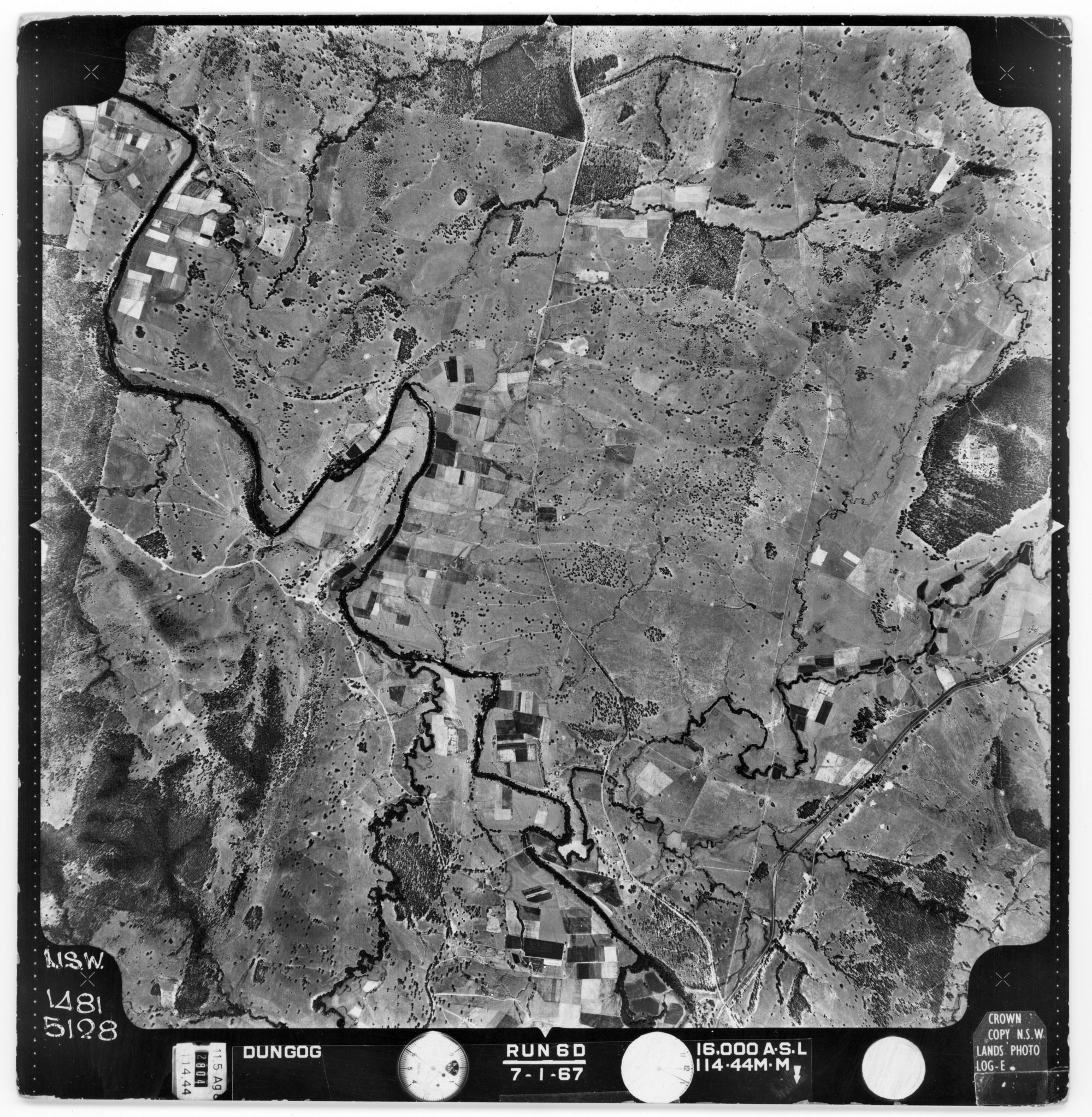 New South Wales. Department of Lands, Dungog, NSW - Aerial photograph, January 1967 (5128) (January, 1967), [DUNGOG-01-1967-R006D-1481-5128]. Living Histories, accessed 18/02/2026, https://livinghistories.newcastle.edu.au/nodes/view/82473