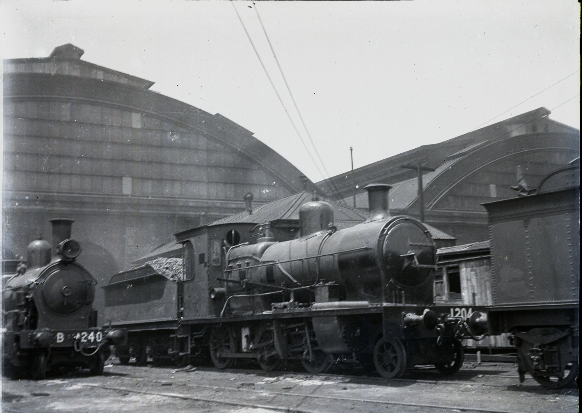 NSWGR, G-1204 Class No. 1204, (later Z-27 Class No. 2701) and B-205 Class No. 240, Eveleigh Locomotive Depot, [1918] ([1918]), [ARHSBox009_0223]. Living Histories, accessed 18/03/2026, https://livinghistories.newcastle.edu.au/nodes/view/8248