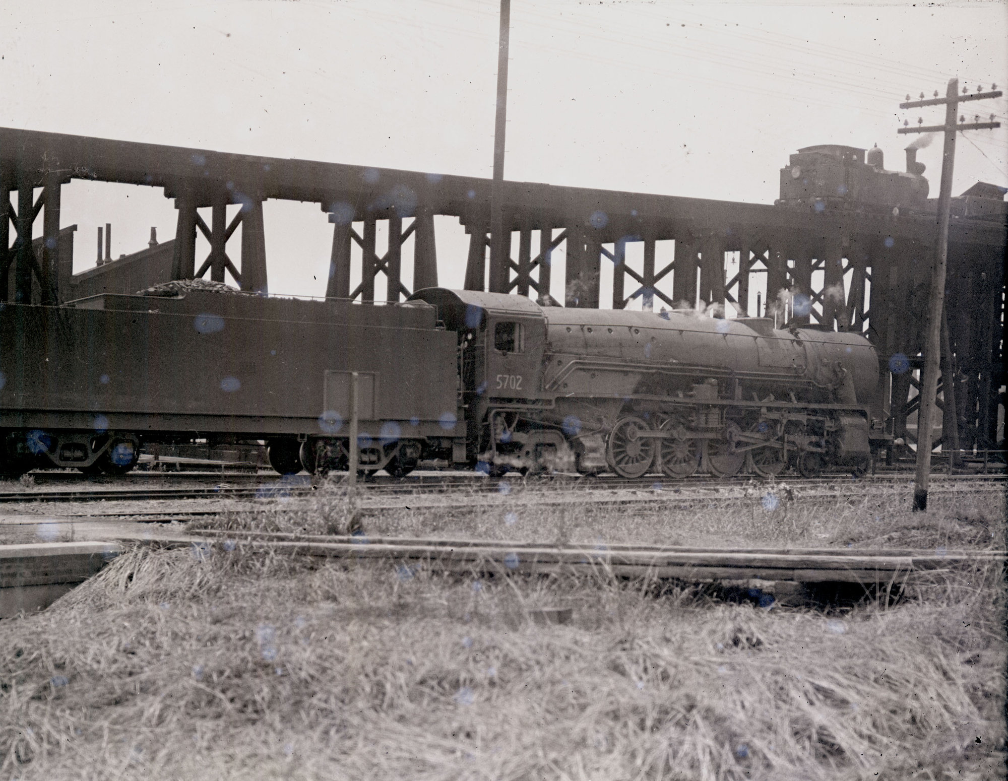 NSWGR D57 Class No. 5702 4-8-2 Mountain Type heavy goods locomotive beside the coal stage at Enfield Locomotive Depot, [1930] ([1930s]), [ARHSBox009_0218]. Living Histories, accessed 20/03/2026, https://livinghistories.newcastle.edu.au/nodes/view/8253
