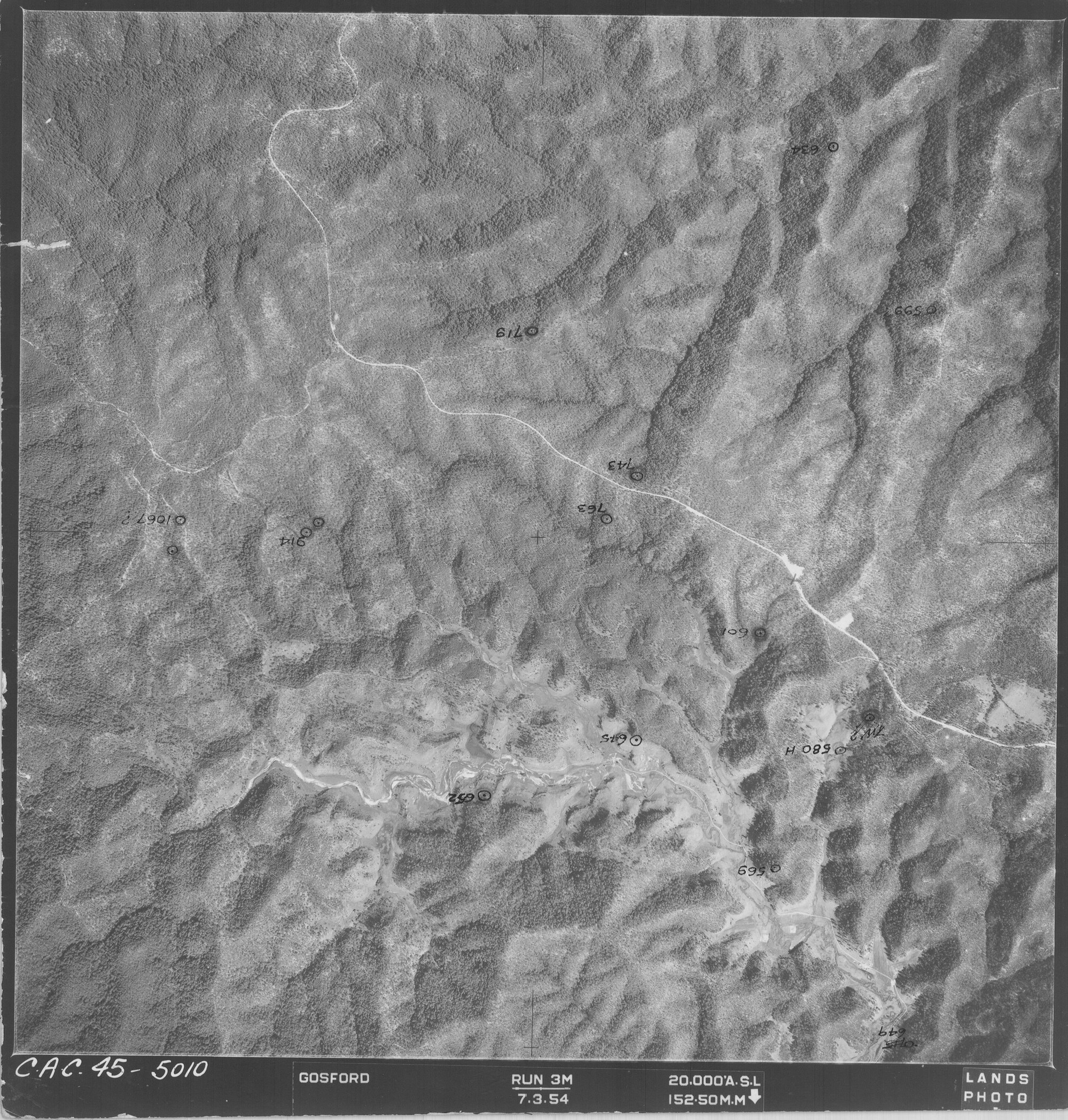 New South Wales. Department of Lands, Morisset, NSW - Aerial photograph, March 1954 (5010) (March, 1954), [MORISSET(GOSFORD)-03-1954-R003-45-5010]. Living Histories, accessed 09/03/2026, https://livinghistories.newcastle.edu.au/nodes/view/82562