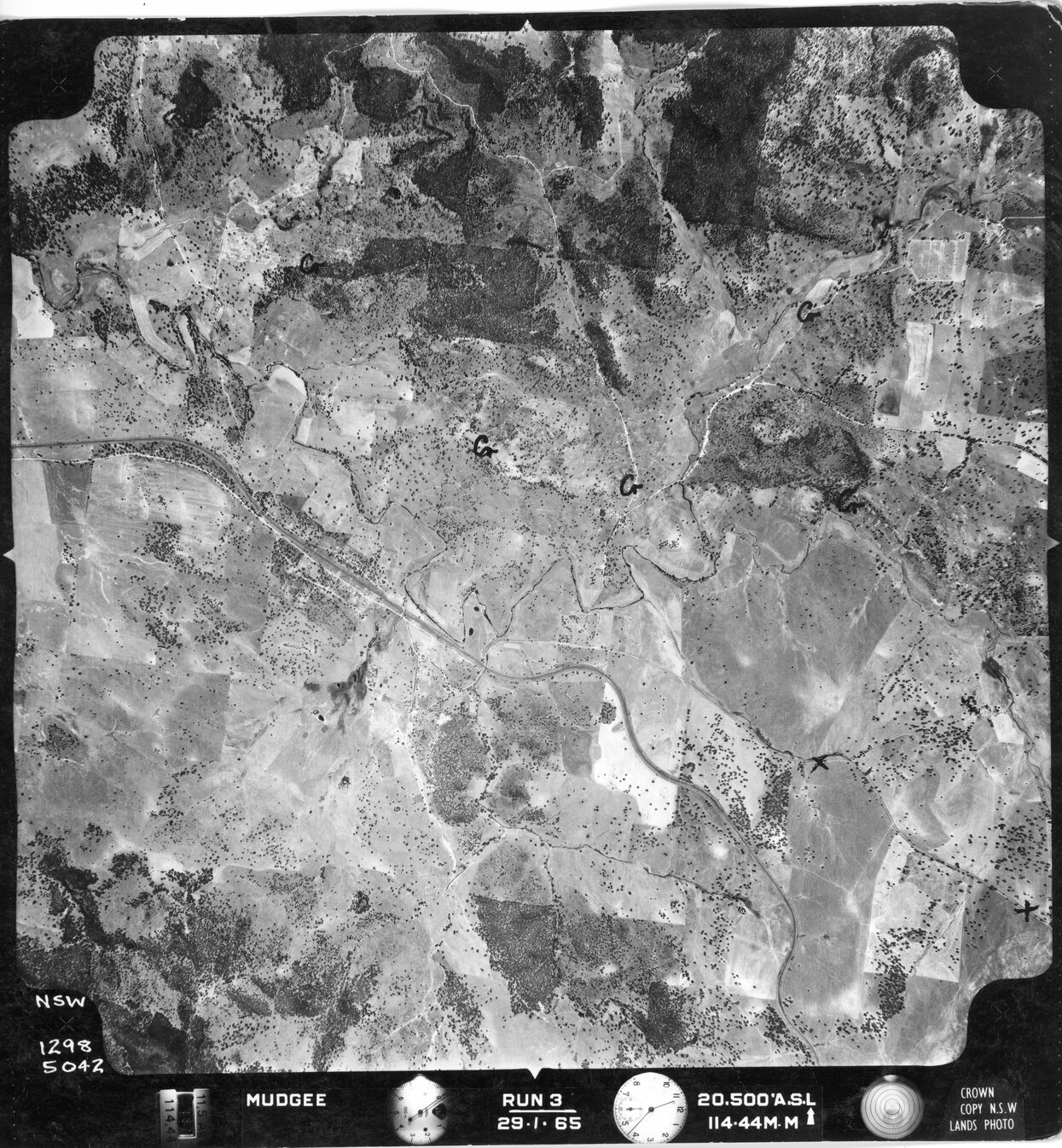 New South Wales. Department of Lands, Mudgee, NSW - Aerial photograph, January 1965 (5042) (January, 1965), [MUDGEE-01-1965-R003-1298-5042]. Living Histories, accessed 15/02/2026, https://livinghistories.newcastle.edu.au/nodes/view/82595