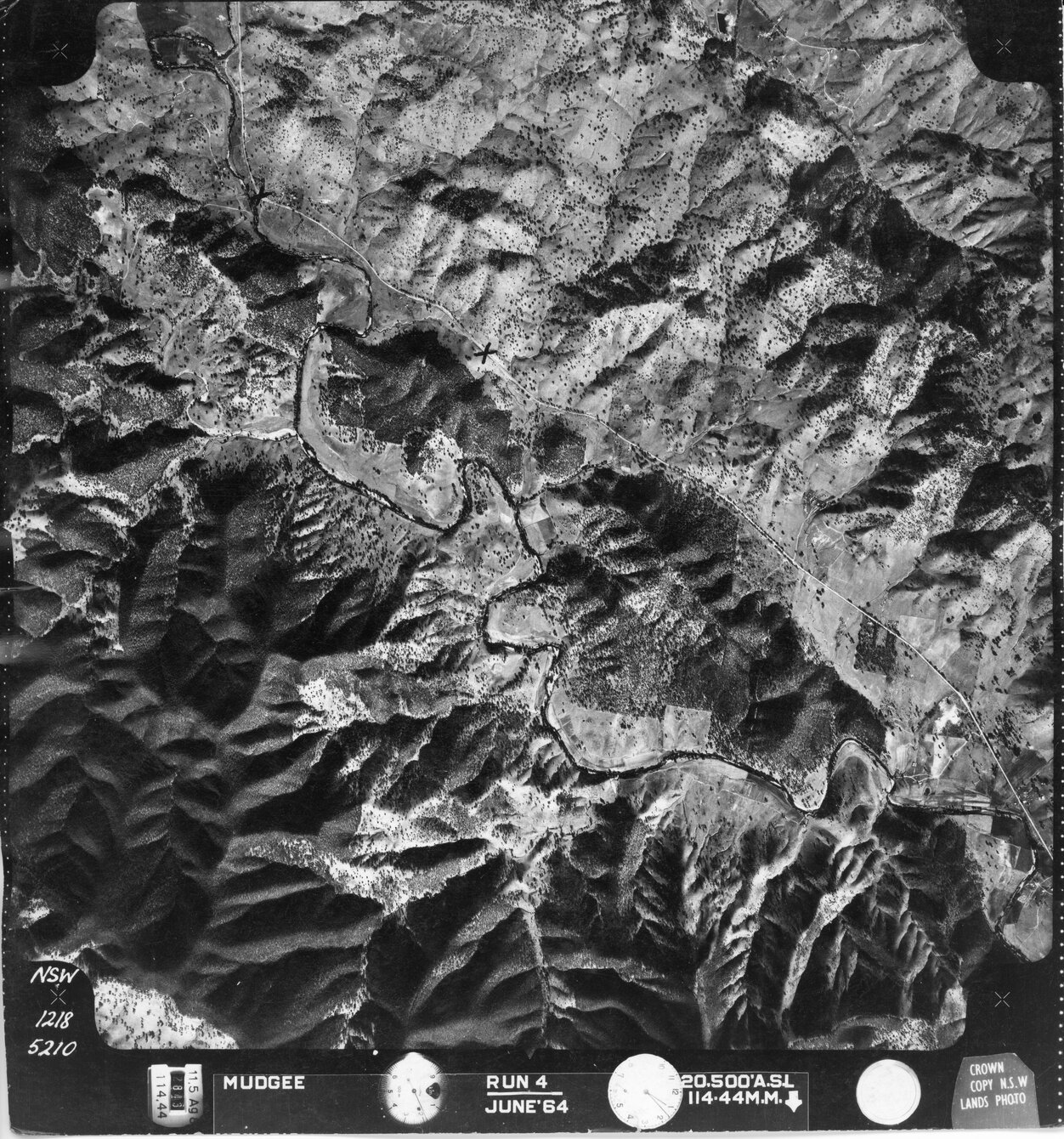 New South Wales. Department of Lands, Mudgee, NSW - Aerial photograph, June 1964 (5210) (June, 1964), [MUDGEE-06-1964-R004-1218-5210]. Living Histories, accessed 19/01/2026, https://livinghistories.newcastle.edu.au/nodes/view/82607