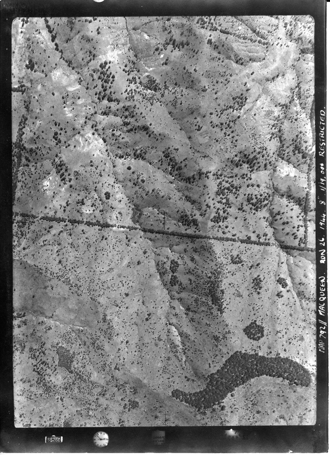 New South Wales. Department of Lands, Bowman (near Gloucester), NSW - Aerial photograph, March 1944 (88268) (March, 1944), [MACQUEEN-03-1944-R026-627-88268]. Living Histories, accessed 16/03/2026, https://livinghistories.newcastle.edu.au/nodes/view/82675