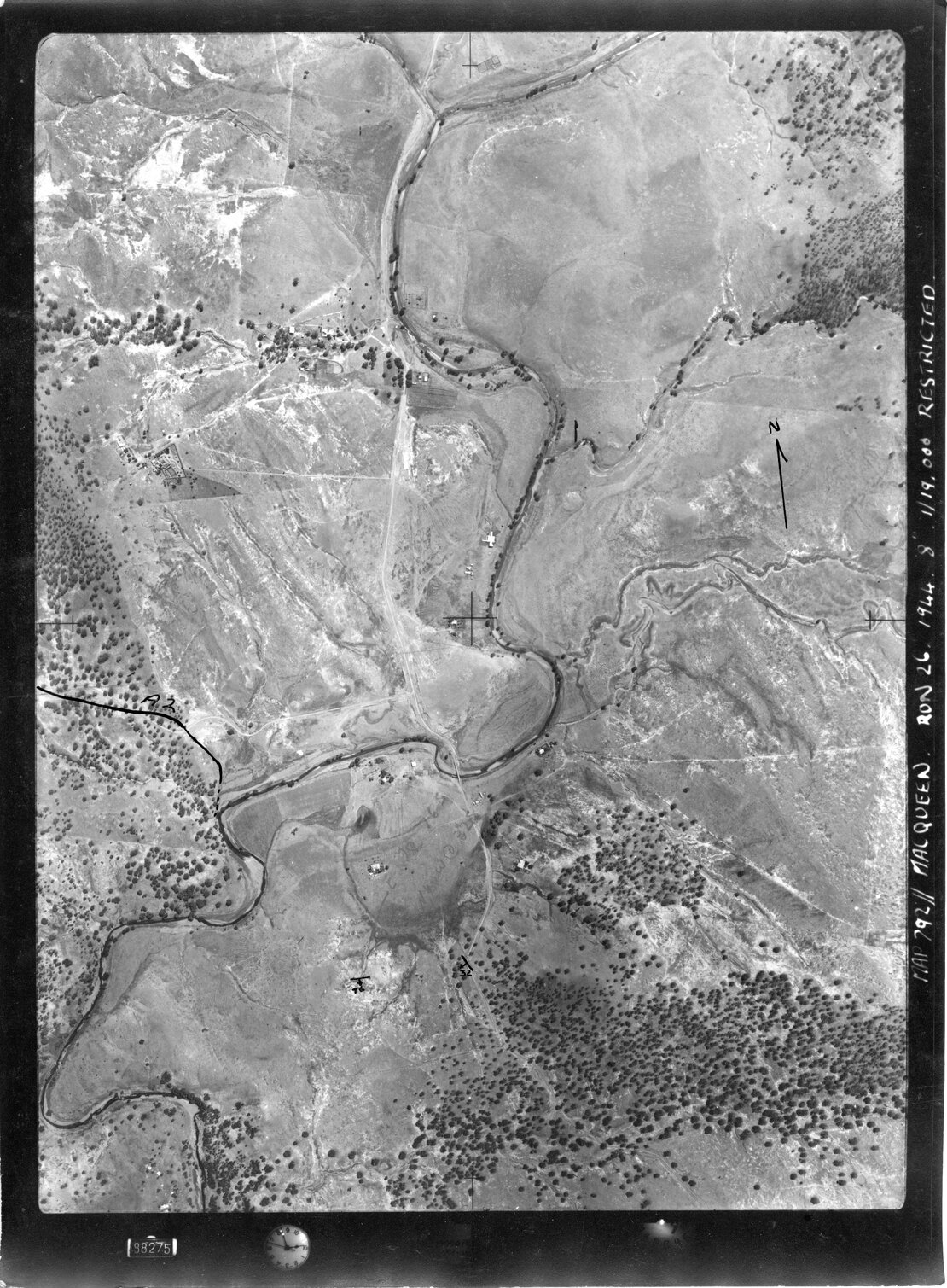 New South Wales. Department of Lands, Bowman (near Gloucester), NSW - Aerial photograph, March 1944 (88262) (March, 1944), [MACQUEEN-03-1944-R026-627-88262]. Living Histories, accessed 16/04/2026, https://livinghistories.newcastle.edu.au/nodes/view/82690