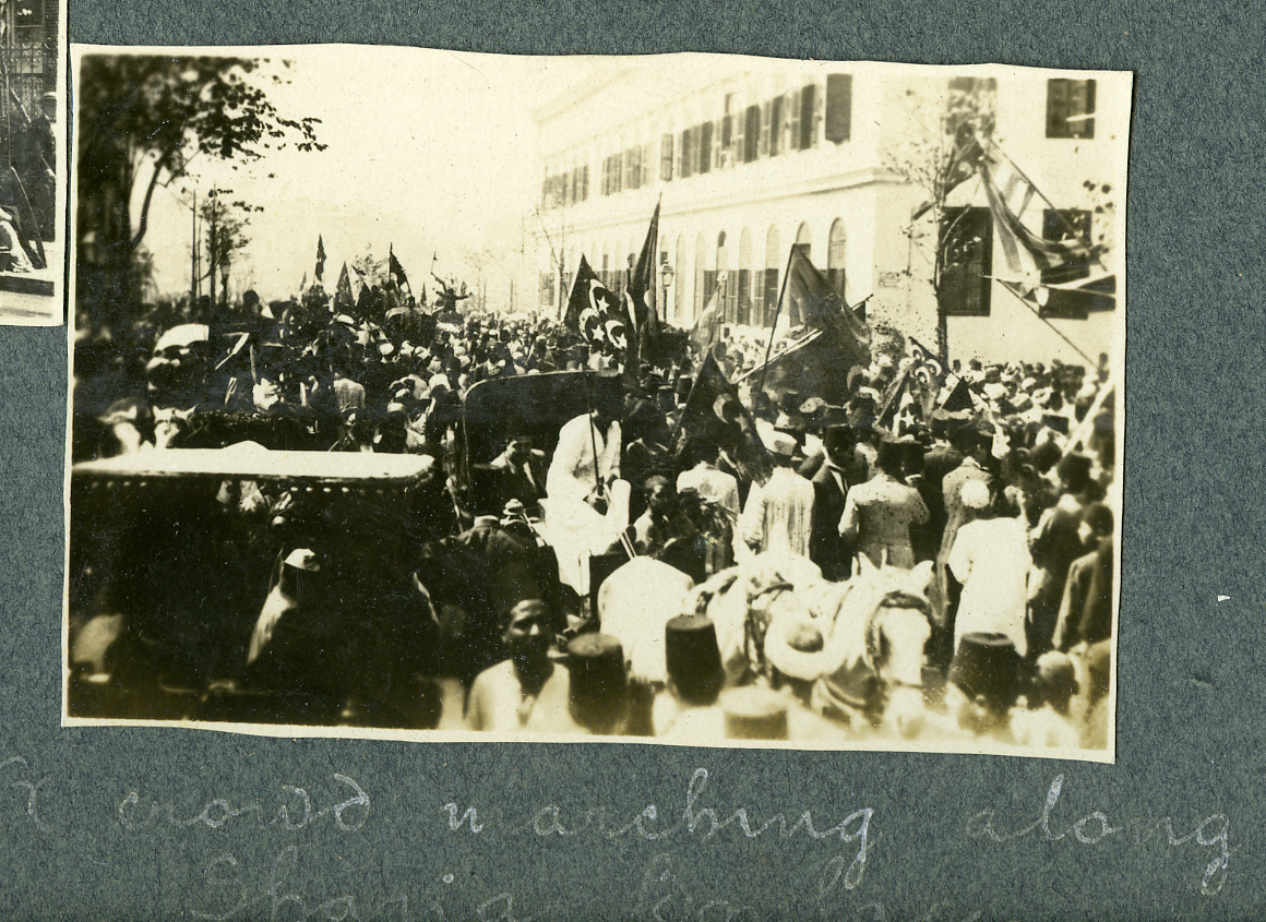 "A crowd marching along Sharia Boulac", Cairo, World War I (28 July 1914 – 11 November 1918), [P093h-72]. Living Histories, accessed 14/04/2026, https://livinghistories.newcastle.edu.au/nodes/view/8280