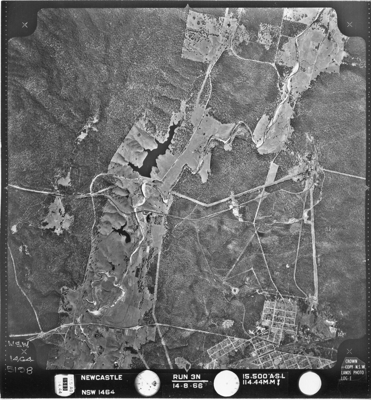 New South Wales. Department of Lands, Newcastle, NSW - Aerial photograph, August 1966 (5198) (August, 1966), [NEWCASTLE-08-1966-R3N-1464-5198]. Living Histories, accessed 16/02/2026, https://livinghistories.newcastle.edu.au/nodes/view/82900