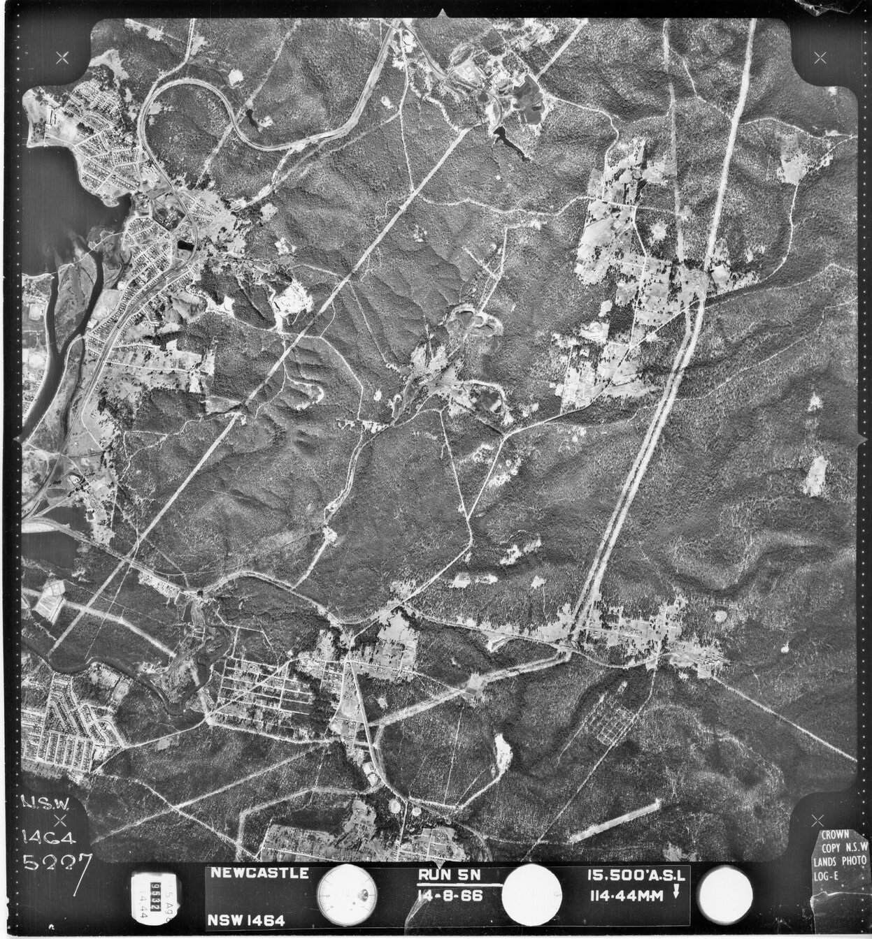 New South Wales. Department of Lands, Newcastle, NSW - Aerial photograph, August 1966 (5227) (August, 1966), [NEWCASTLE-08-1966-R5N-1464-5227]. Living Histories, accessed 16/04/2026, https://livinghistories.newcastle.edu.au/nodes/view/82927