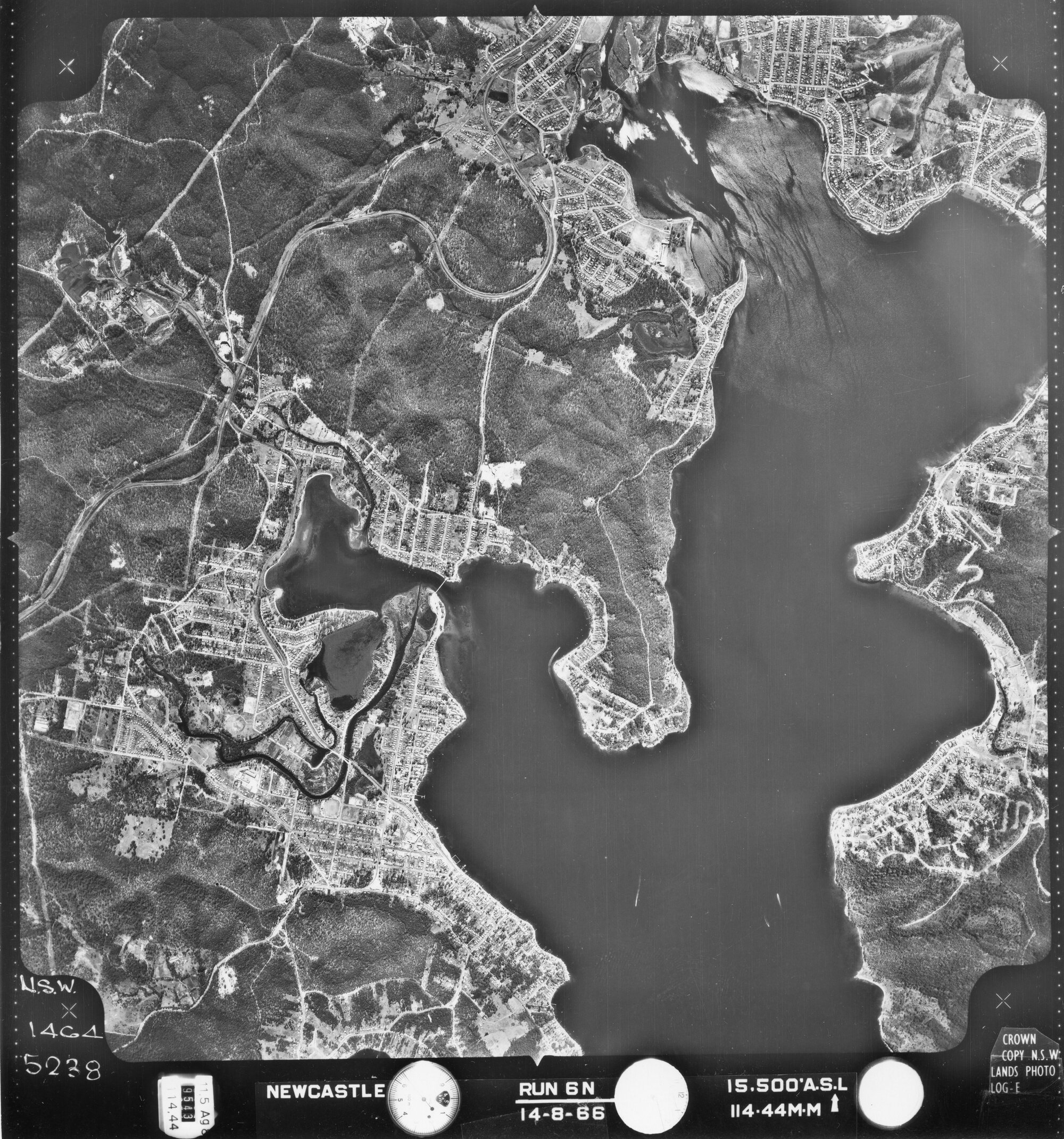 New South Wales. Department of Lands, Newcastle, NSW - Aerial photograph, August 1966 (5238) (August, 1966), [NEWCASTLE-08-1966-R6N-1464-5238]. Living Histories, accessed 15/04/2026, https://livinghistories.newcastle.edu.au/nodes/view/82938