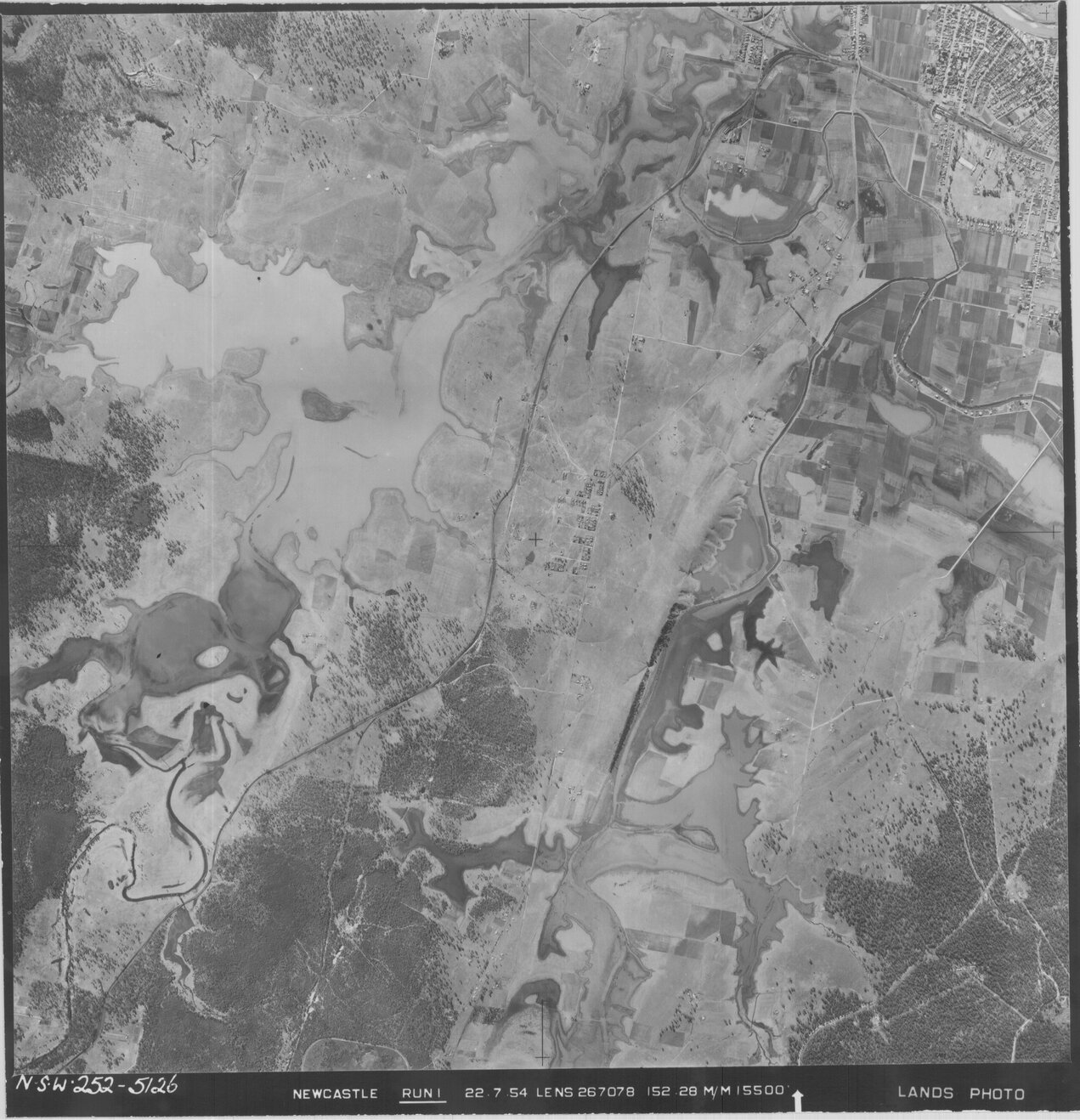 New South Wales. Department of Lands, Newcastle, NSW - Aerial photograph, July 1954 (5126) (July, 1954), [NEWCASTLE-07-1954-R001-252-5126]. Living Histories, accessed 11/03/2026, https://livinghistories.newcastle.edu.au/nodes/view/83067