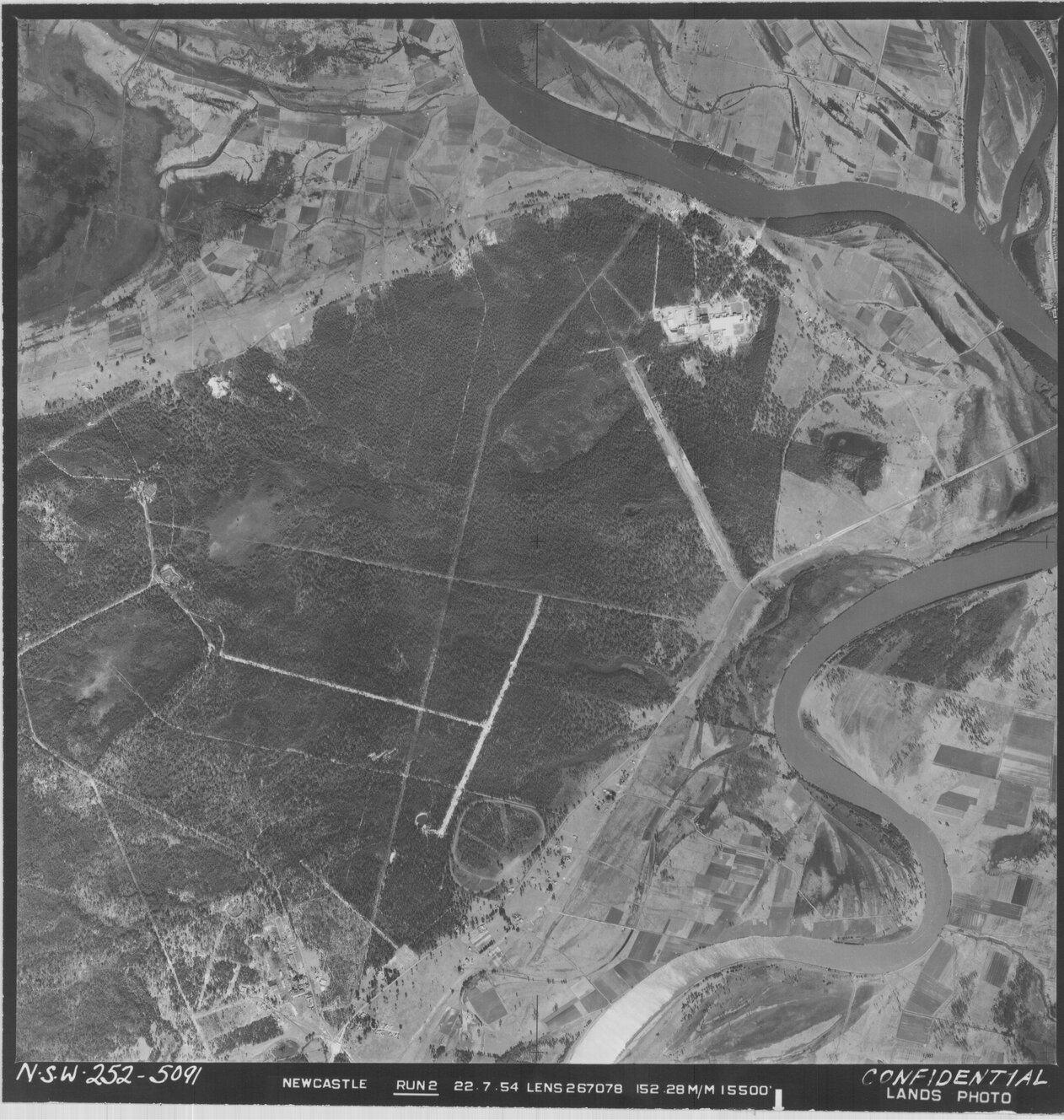 New South Wales. Department of Lands, Newcastle, NSW - Aerial photograph, July 1954 (5091) (July, 1954), [NEWCASTLE-07-1954-R002-252-5091]. Living Histories, accessed 18/03/2026, https://livinghistories.newcastle.edu.au/nodes/view/83082