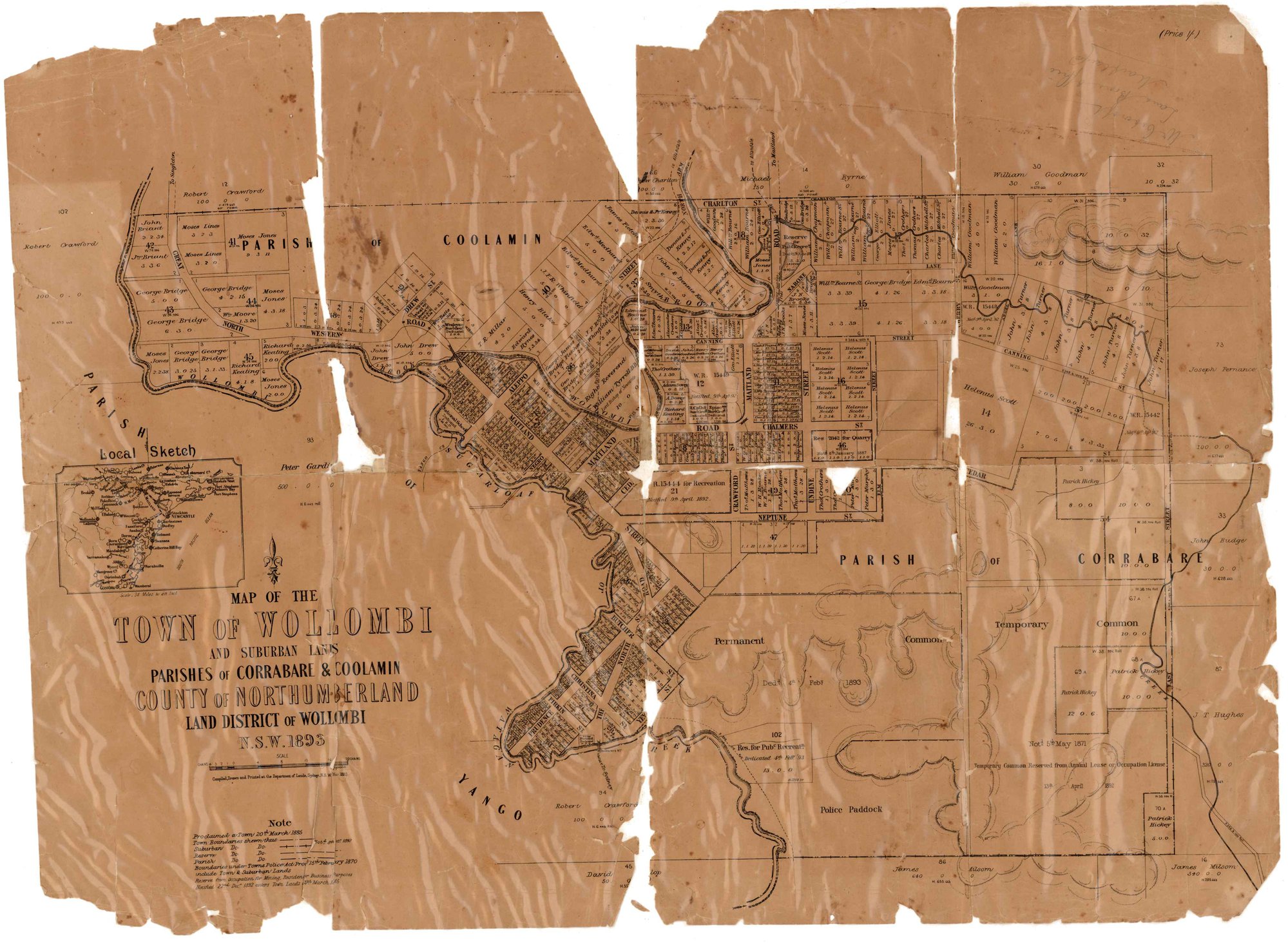 Department of Lands, Map of the town of Wollombi, 1893 (1893-03), [M2261]. Living Histories, accessed 19/03/2026, https://livinghistories.newcastle.edu.au/nodes/view/83368
