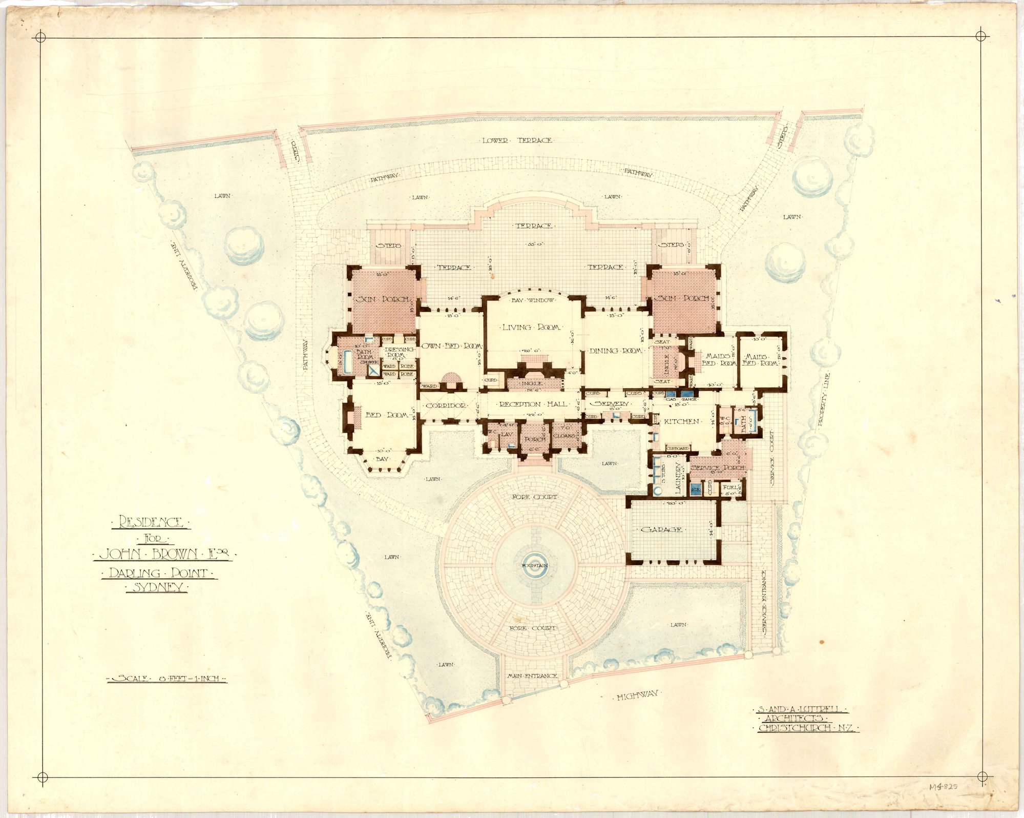 S. & A. Luttrell Architects Christchurch N.Z., Gardens, House : Residence for John Brown Esq Darling Point, Sydney [n.d.], [M4825]. Living Histories, accessed 22/01/2026, https://livinghistories.newcastle.edu.au/nodes/view/83512