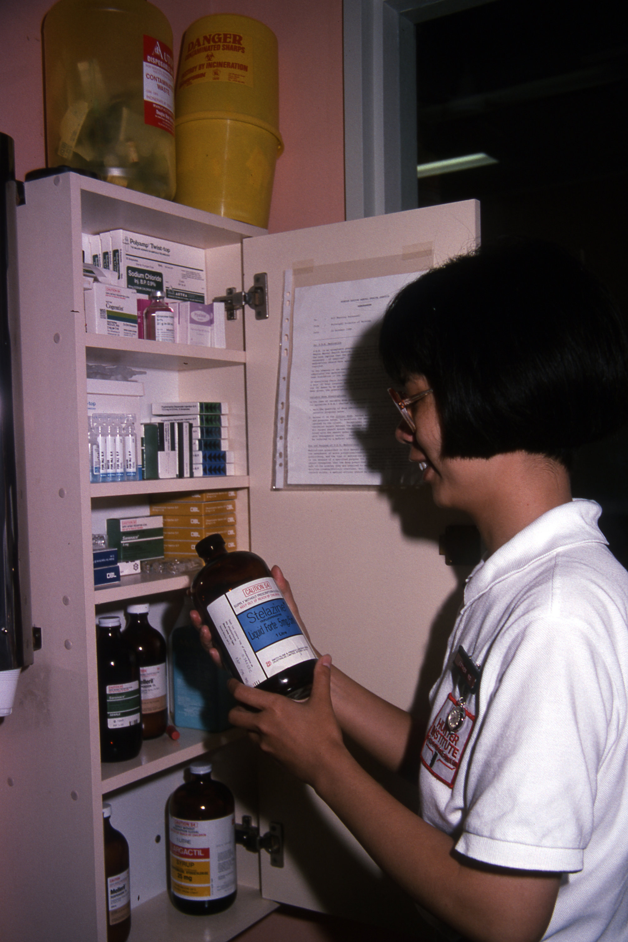 Medical Communication Unit, University of Newcastle, Australia, At medicine cabinet - University of Newcastle, Australia, [MCU-AsianStudents-Nursing028]. Living Histories, accessed 17/04/2026, https://livinghistories.newcastle.edu.au/nodes/view/8380