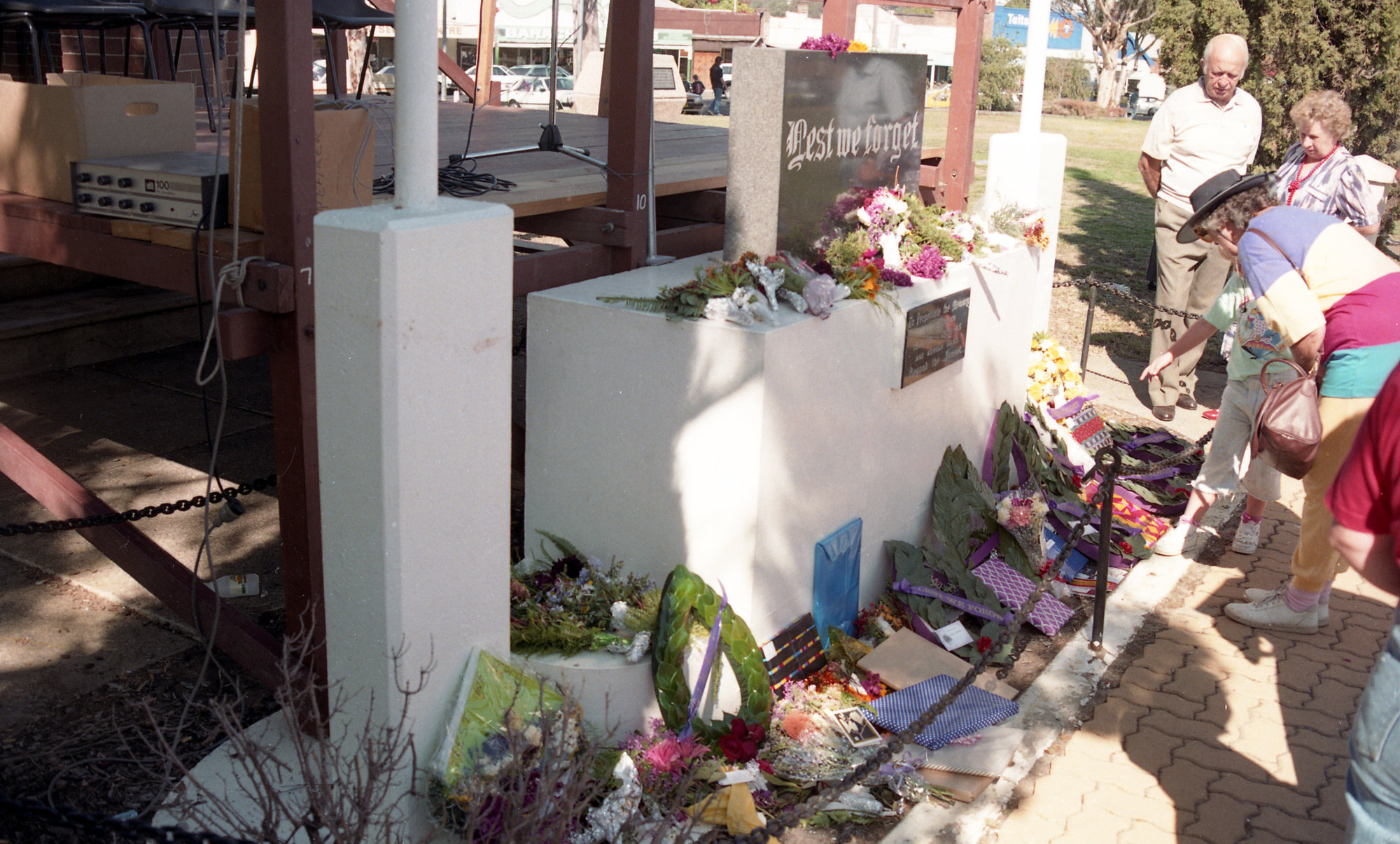 Sternbeck, Percival William, 1921-2004, War Memorial, ANZAC Day, Kurri Kurri, NSW, 25 April 1991 (25th April 1991), [Sternbeck_Bk30_1991-04a_025]. Living Histories, accessed 19/03/2026, https://livinghistories.newcastle.edu.au/nodes/view/83823