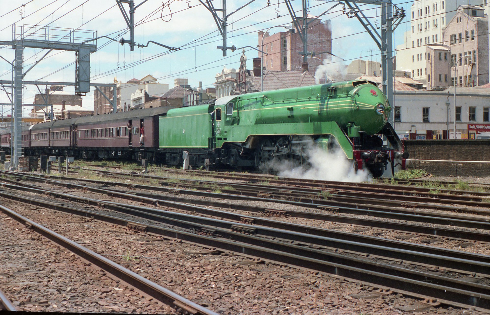 Sansom, Peter, 3801 leaving Newcastle with its train early 1987 (1st January 1987), [OL_SANSOM_0528]. Living Histories, accessed 19/03/2026, https://livinghistories.newcastle.edu.au/nodes/view/84018