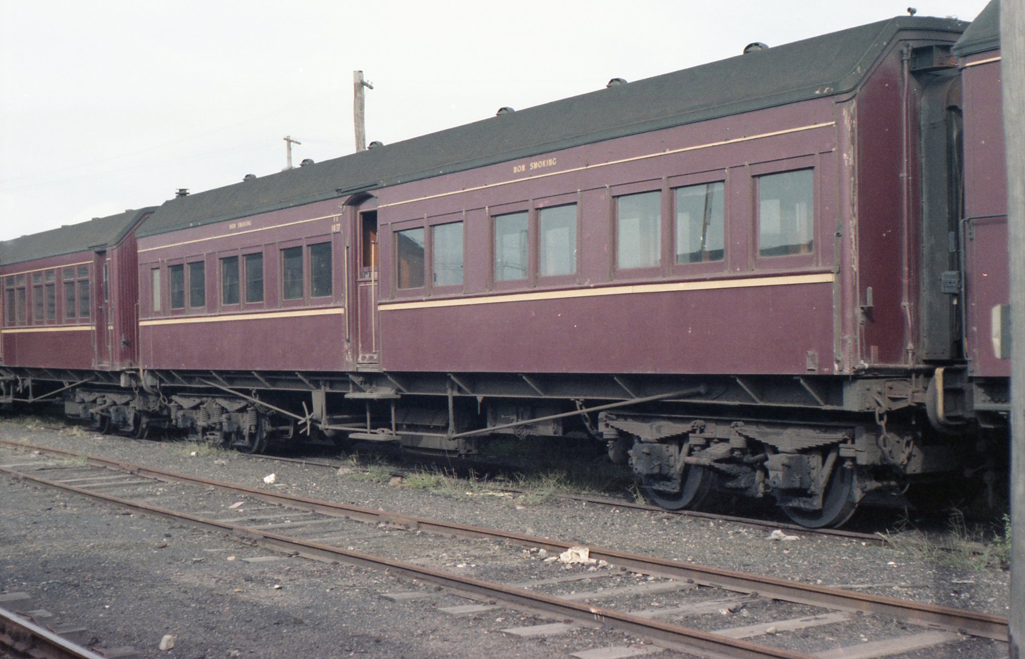 Sansom, Peter, An FR coach being used for suburban services in Newcastle yard, Newcastle, NSW, [OL_SANSOM_0841]. Living Histories, accessed 20/03/2026, https://livinghistories.newcastle.edu.au/nodes/view/84219