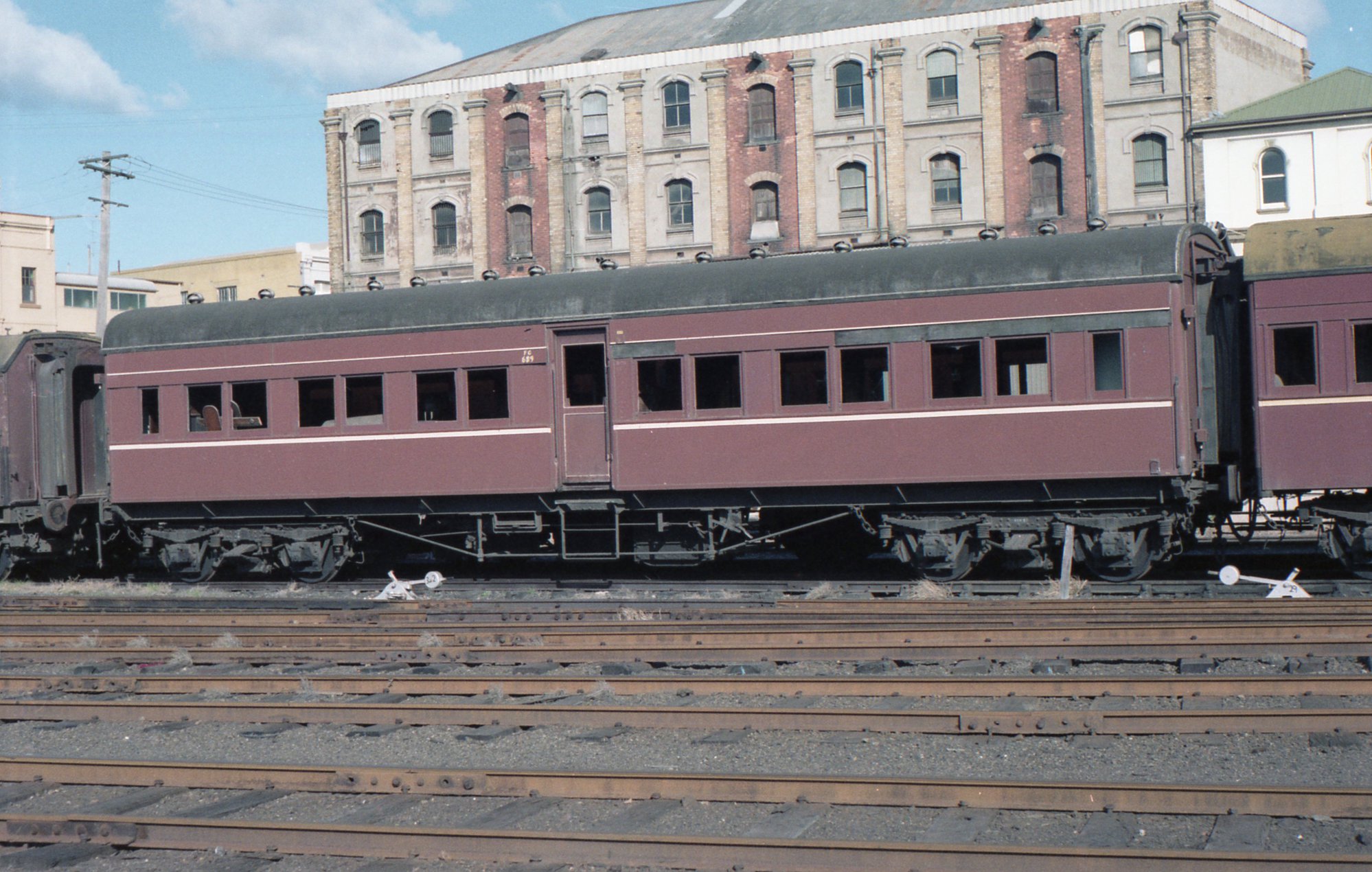 Sansom, Peter, An FG class coach in Newcastle yard, Newcastle, NSW, [OL_SANSOM_0845]. Living Histories, accessed 19/03/2026, https://livinghistories.newcastle.edu.au/nodes/view/84221