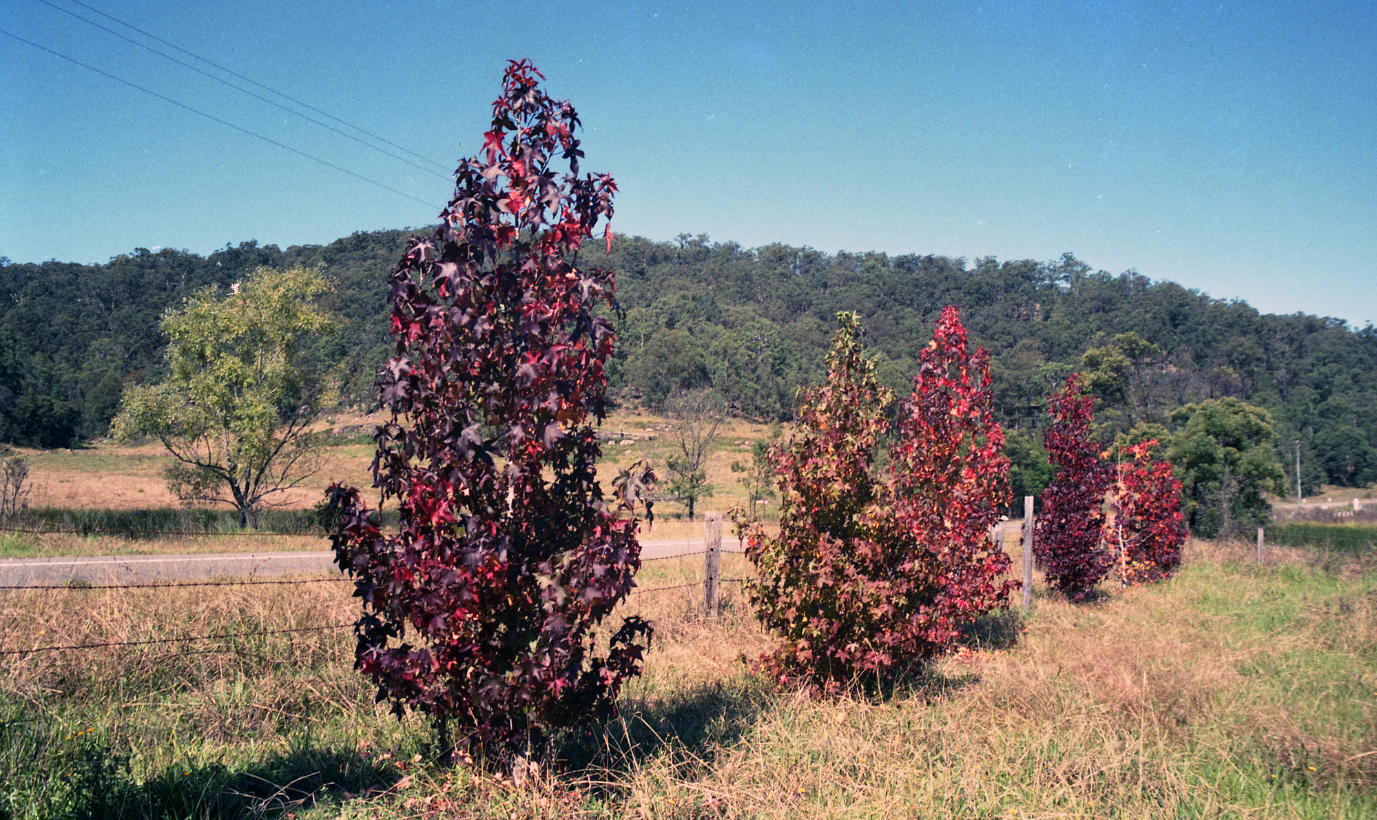 Sternbeck, Percival William, 1921-2004, Liquid amber trees near Wollombi, NSW, April 1988 (Between 1st April 1988 and 30th April 1988), [Sternbeck_Bk_15_Apr_1988_008]. Living Histories, accessed 19/03/2026, https://livinghistories.newcastle.edu.au/nodes/view/84233