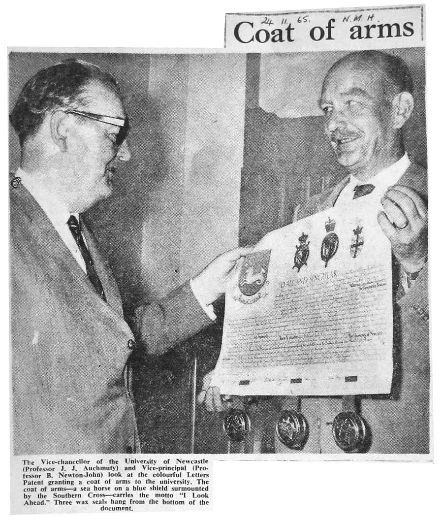 Grant of Arms - Newcastle Morning Herald, 24 Nov 1965 (1965). Living Histories, accessed 14/02/2026, https://livinghistories.newcastle.edu.au/nodes/view/8441