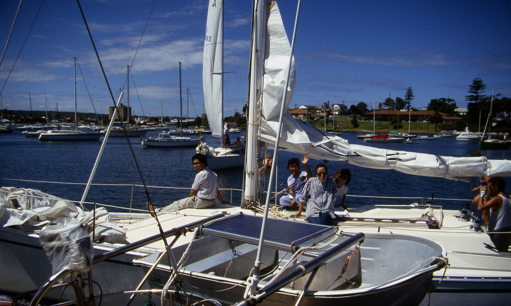 Medical Communication Unit, University of Newcastle, Australia, On a yacht - Lake Macquarie, NSW, [MCU-AsianStudents-Sailing042]. Living Histories, accessed 17/02/2026, https://livinghistories.newcastle.edu.au/nodes/view/8489