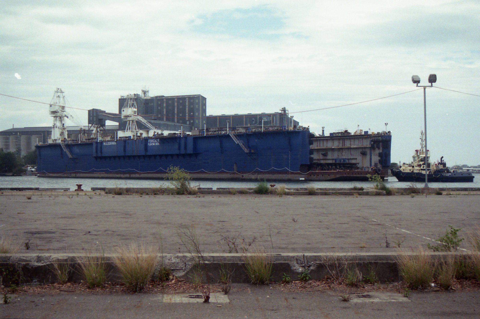 Sansom, Peter, The floating dock Muloobinba seen from Lee Wharf, Newcastle, NSW, [OL_SANSOM_0238]. Living Histories, accessed 16/02/2026, https://livinghistories.newcastle.edu.au/nodes/view/85319