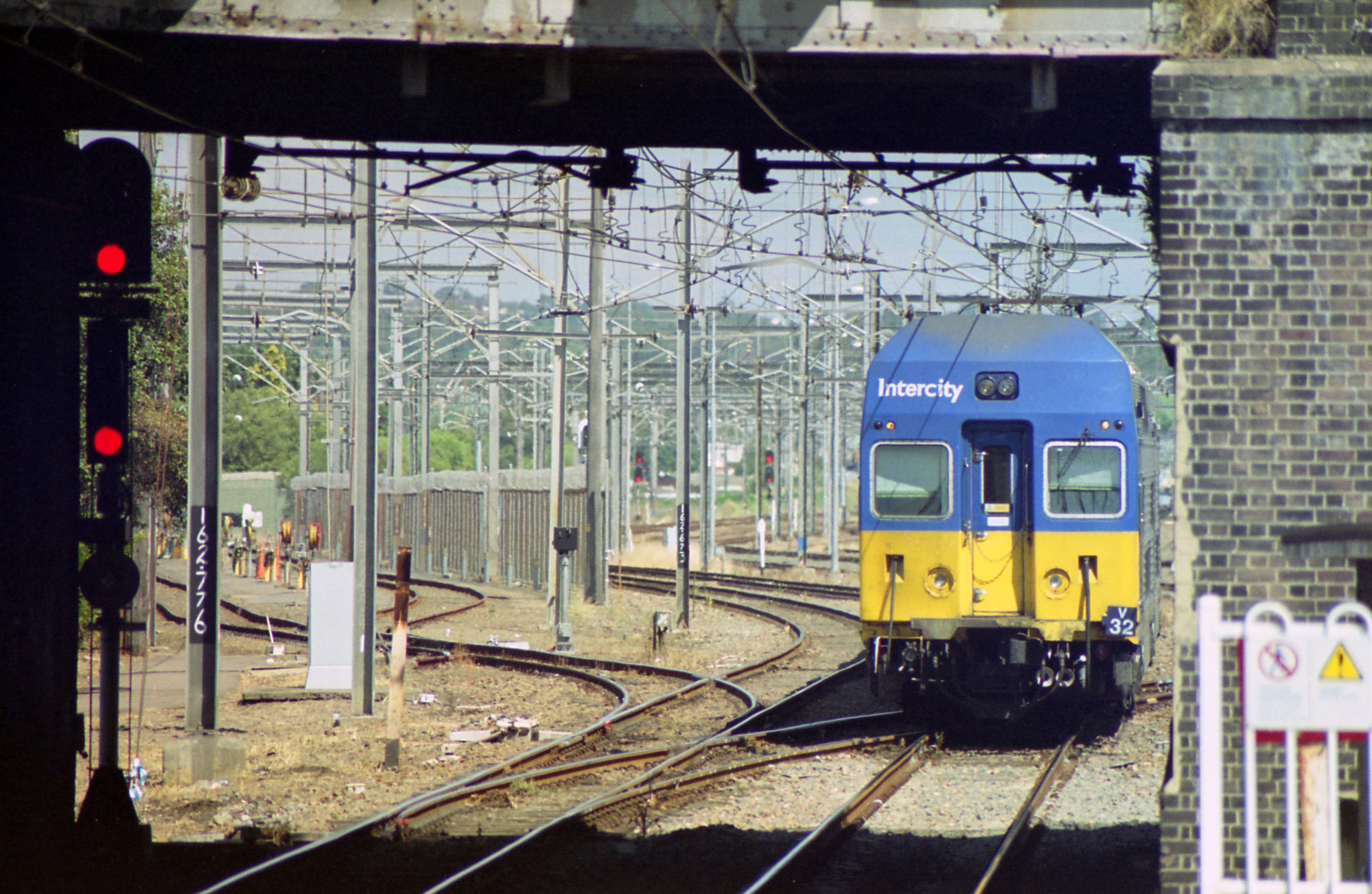 V set 32 from Sydney approaching Broadmeadow on its way to Newcastle, March 2009